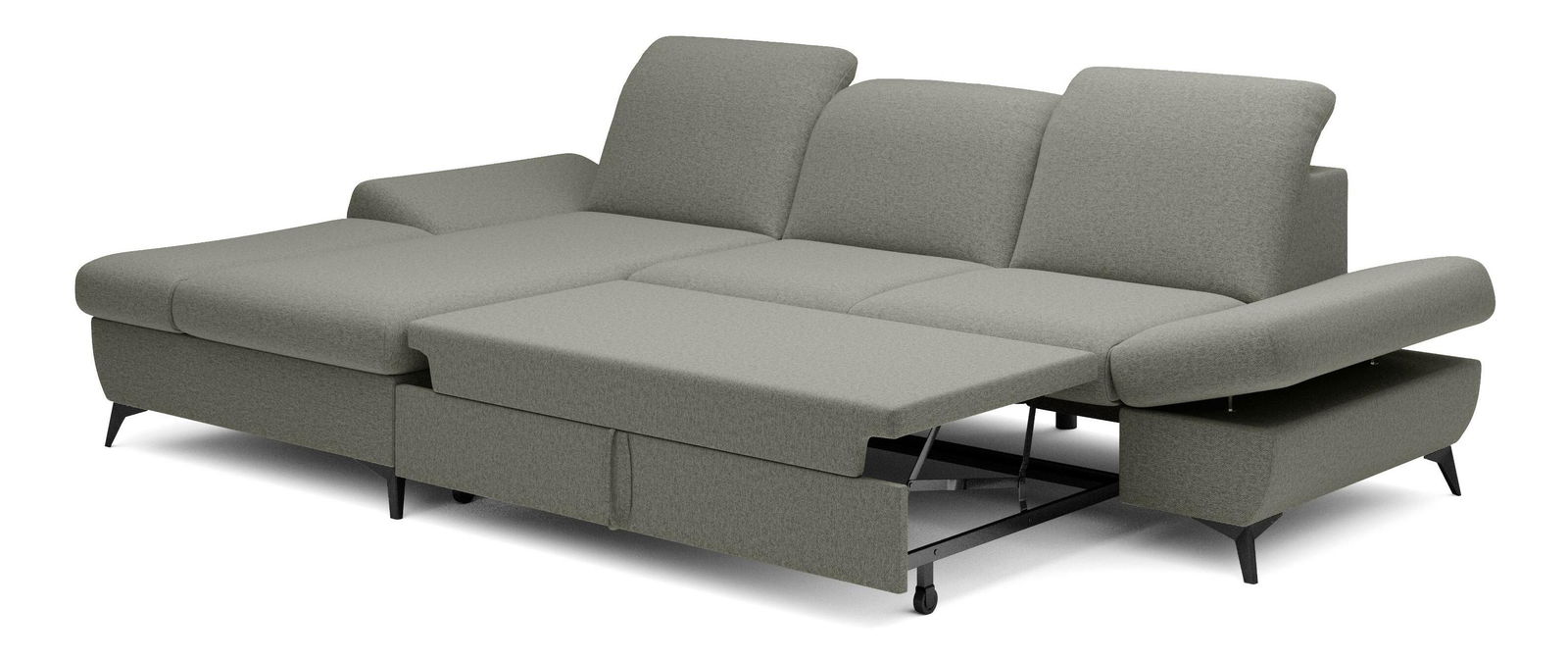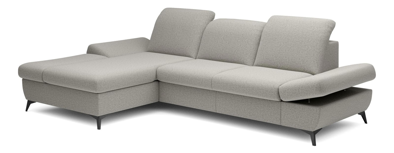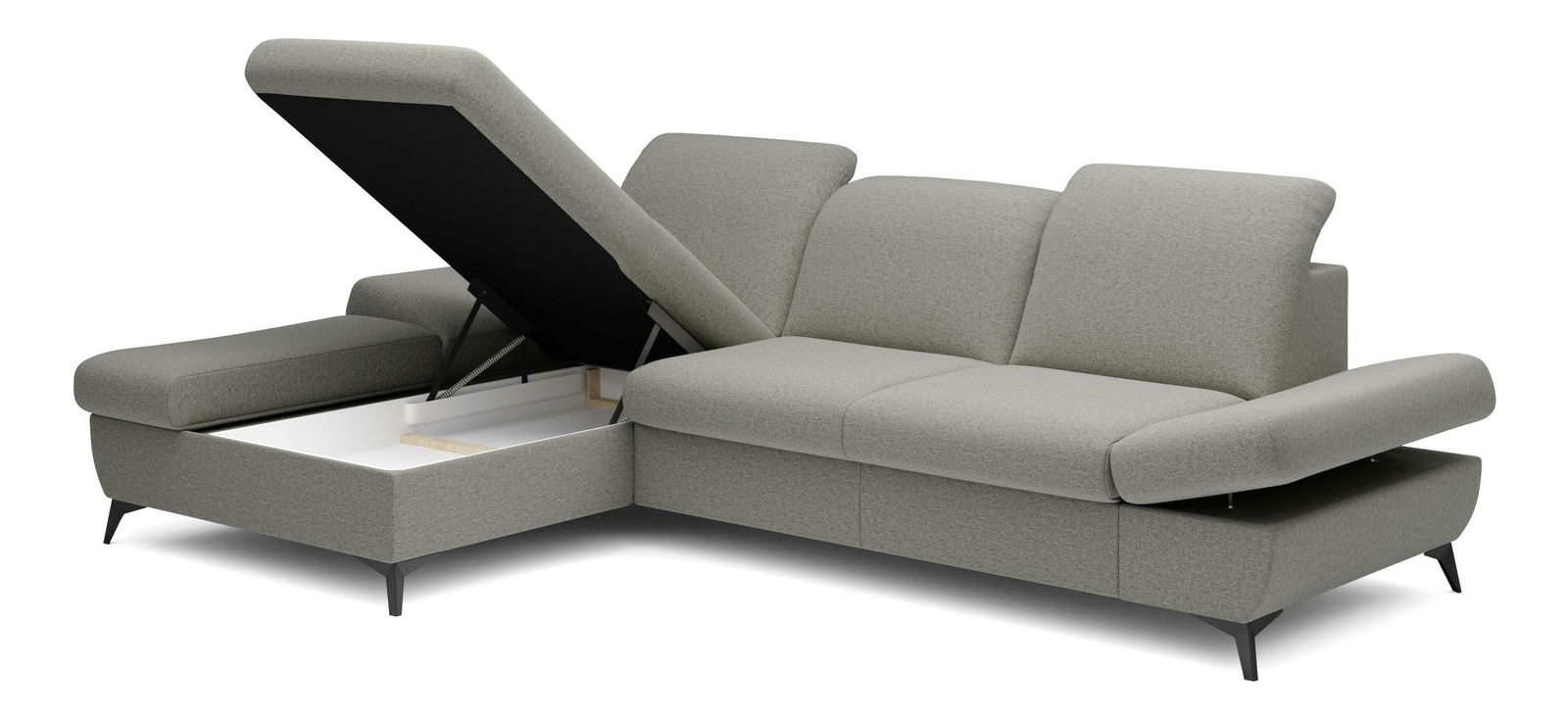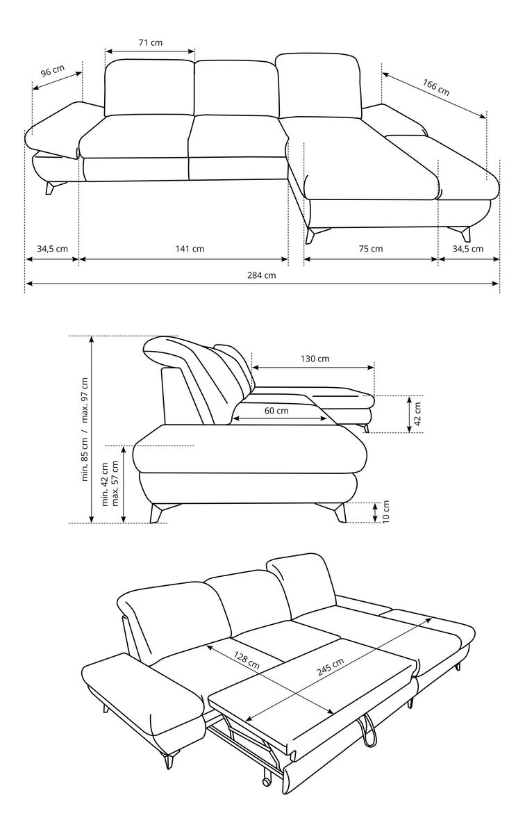 ZobrazitRohová sedačka je vyrobena z kvalitní konstrukce ze dřeva a dřevotřísky, což zaručuje pevnost a trvanlivost. Sedák je z PUR pěny a pružin, které poskytují maximální pohodlí při sezení. Sedačka je rozkládací a nabízí plochu na spaní o rozměrech 128 x 245 cm, ideální pro hosty nebo pro příležitostné přespání. Výška sezení je 42 cm, hloubka sezení 60 cm a výška područky lze nastavit od 42 cm do 57 cm, což umožňuje individuální nastavení podle potřeb uživatele. Sedačka disponuje úložným prostorem, kde můžete uschovat ložní prádlo nebo jiné věci. Hřbet sedačky je potažen stejnou látkou, čímž se dosahuje jednotného a elegantního vzhledu. Nastavitelné opěrky hlavy a područky zvyšují komfort sezení. Nožičky jsou kovové o výšce 10 cm, což dodává sedačce moderní vzhled a stabilitu. Typ rozkládání je vozík, což umožňuje snadné a rychlé rozkládání sedačky.
