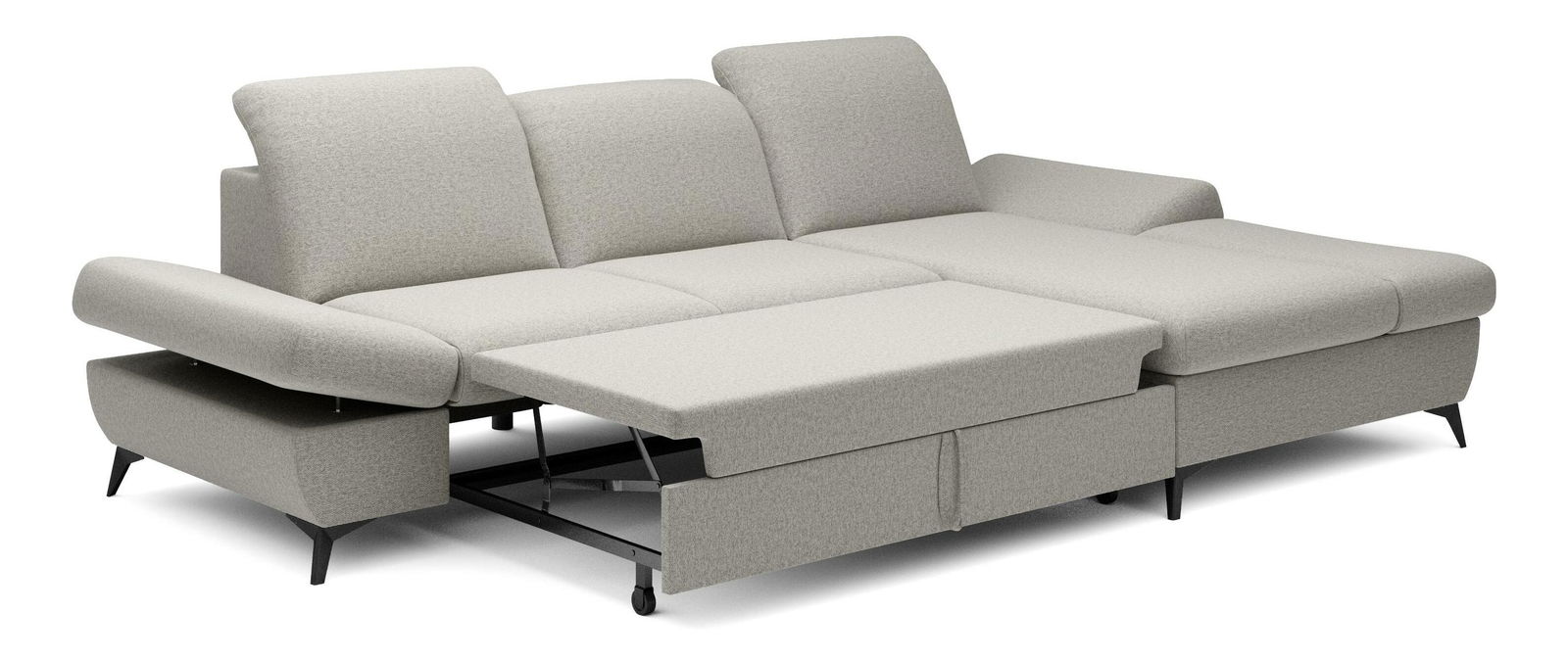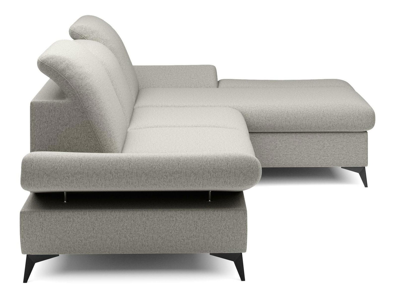 ZobrazitRohová sedačka je vyrobena z kvalitní konstrukce ze dřeva a dřevotřísky, což zaručuje pevnost a trvanlivost. Sedák je z PUR pěny a pružin, které poskytují maximální pohodlí při sezení. Sedačka je rozkládací a nabízí plochu na spaní o rozměrech 128 x 245 cm, ideální pro hosty nebo pro příležitostné přespání. Výška sezení je 42 cm, hloubka sezení 60 cm a výška područky lze nastavit od 42 cm do 57 cm, což umožňuje individuální nastavení podle potřeb uživatele. Sedačka disponuje úložným prostorem, kde můžete uschovat ložní prádlo nebo jiné věci. Hřbet sedačky je potažen stejnou látkou, čímž se dosahuje jednotného a elegantního vzhledu. Nastavitelné opěrky hlavy a područky zvyšují komfort sezení. Nožičky jsou kovové o výšce 10 cm, což dodává sedačce moderní vzhled a stabilitu. Typ rozkládání je vozík, což umožňuje snadné a rychlé rozkládání sedačky.