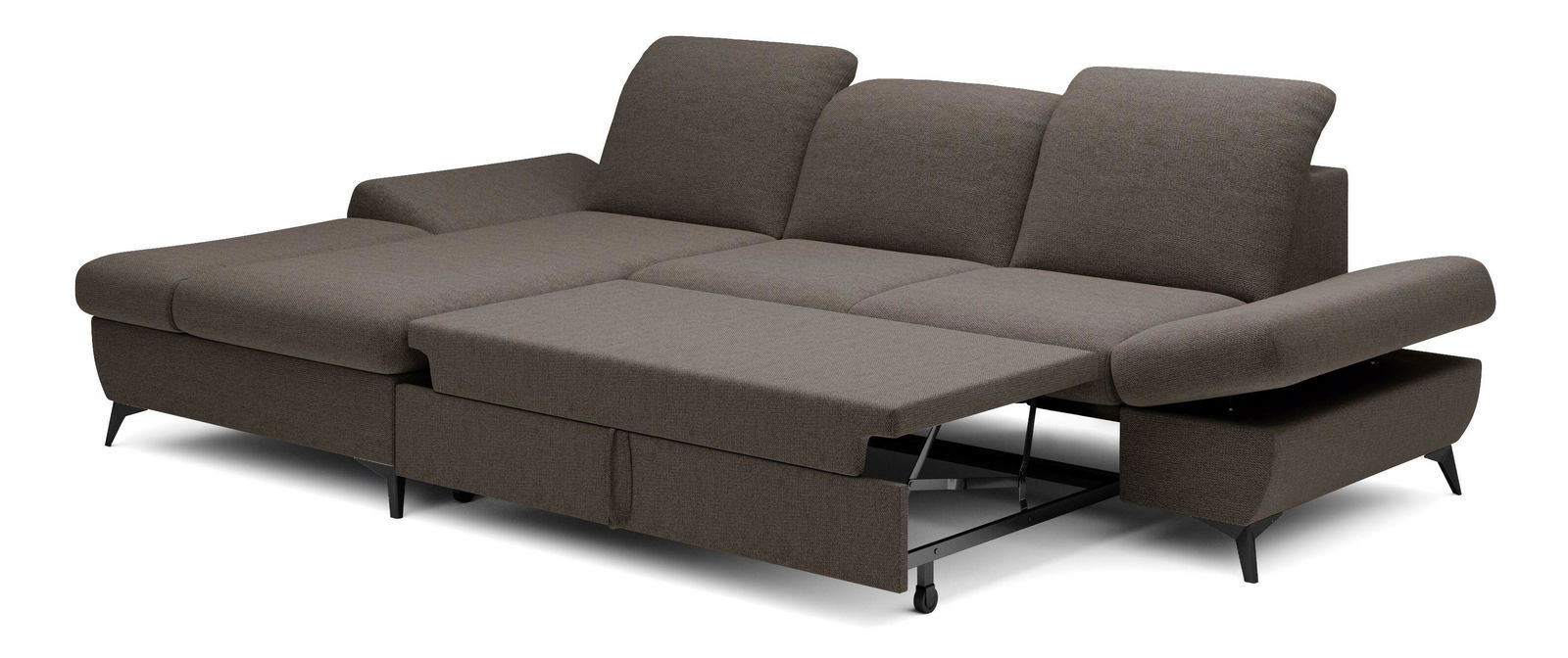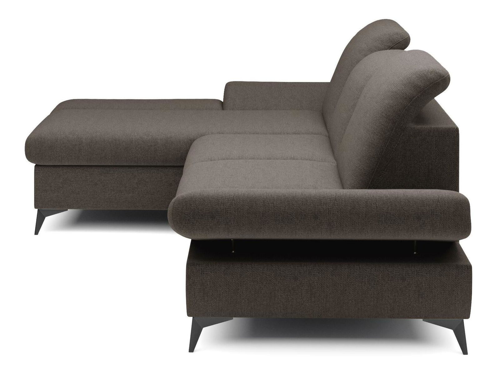 ZobrazitRohová sedačka je vyrobena z kvalitní konstrukce ze dřeva a dřevotřísky, což zaručuje pevnost a trvanlivost. Sedák je z PUR pěny a pružin, které poskytují maximální pohodlí při sezení. Sedačka je rozkládací a nabízí plochu na spaní o rozměrech 128 x 245 cm, ideální pro hosty nebo pro příležitostné přespání. Výška sezení je 42 cm, hloubka sezení 60 cm a výška područky lze nastavit od 42 cm do 57 cm, což umožňuje individuální nastavení podle potřeb uživatele. Sedačka disponuje úložným prostorem, kde můžete uschovat ložní prádlo nebo jiné věci. Hřbet sedačky je potažen stejnou látkou, čímž se dosahuje jednotného a elegantního vzhledu. Nastavitelné opěrky hlavy a područky zvyšují komfort sezení. Nožičky jsou kovové o výšce 10 cm, což dodává sedačce moderní vzhled a stabilitu. Typ rozkládání je vozík, což umožňuje snadné a rychlé rozkládání sedačky.