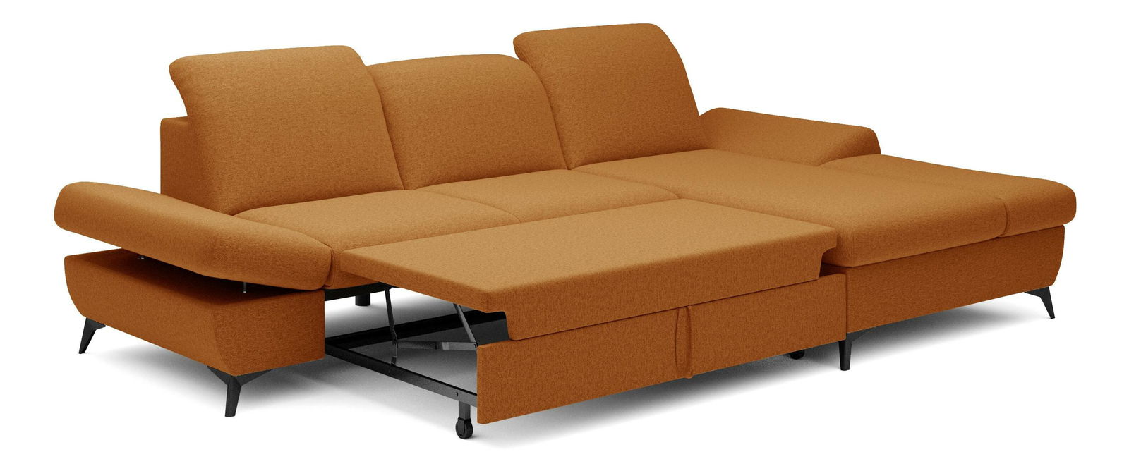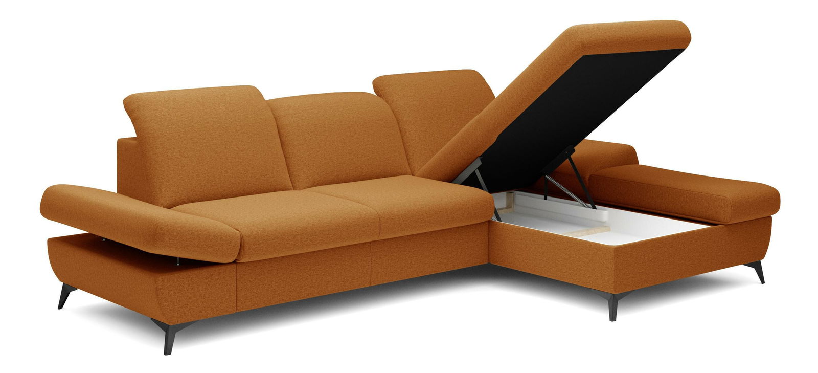 ZobrazitRohová sedačka je vyrobena z kvalitní konstrukce ze dřeva a dřevotřísky, což zaručuje pevnost a trvanlivost. Sedák je z PUR pěny a pružin, které poskytují maximální pohodlí při sezení. Sedačka je rozkládací a nabízí plochu na spaní o rozměrech 128 x 245 cm, ideální pro hosty nebo pro příležitostné přespání. Výška sezení je 42 cm, hloubka sezení 60 cm a výška područky lze nastavit od 42 cm do 57 cm, což umožňuje individuální nastavení podle potřeb uživatele. Sedačka disponuje úložným prostorem, kde můžete uschovat ložní prádlo nebo jiné věci. Hřbet sedačky je potažen stejnou látkou, čímž se dosahuje jednotného a elegantního vzhledu. Nastavitelné opěrky hlavy a područky zvyšují komfort sezení. Nožičky jsou kovové o výšce 10 cm, což dodává sedačce moderní vzhled a stabilitu. Typ rozkládání je vozík, což umožňuje snadné a rychlé rozkládání sedačky.