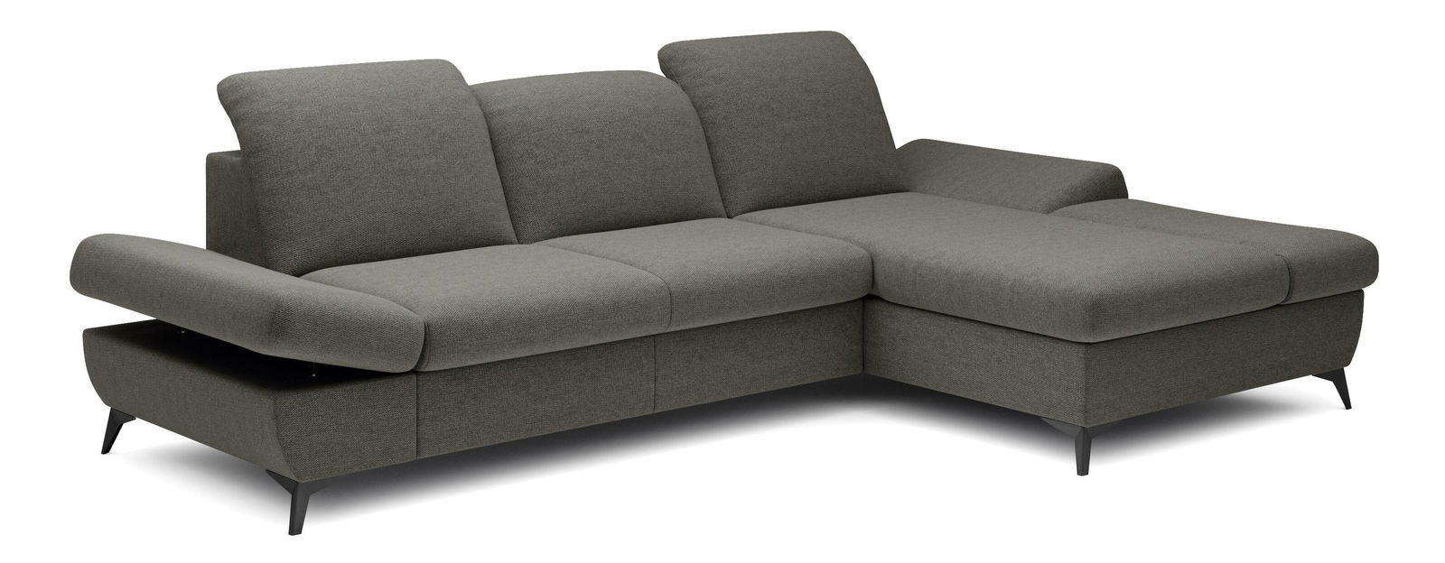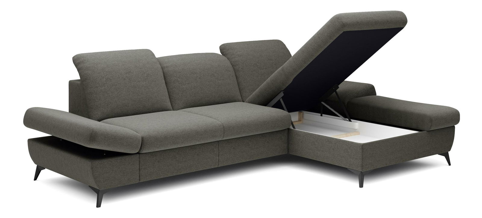 ZobrazitRohová sedačka je vyrobena z kvalitní konstrukce ze dřeva a dřevotřísky, což zaručuje pevnost a trvanlivost. Sedák je z PUR pěny a pružin, které poskytují maximální pohodlí při sezení. Sedačka je rozkládací a nabízí plochu na spaní o rozměrech 128 x 245 cm, ideální pro hosty nebo pro příležitostné přespání. Výška sezení je 42 cm, hloubka sezení 60 cm a výška područky lze nastavit od 42 cm do 57 cm, což umožňuje individuální nastavení podle potřeb uživatele. Sedačka disponuje úložným prostorem, kde můžete uschovat ložní prádlo nebo jiné věci. Hřbet sedačky je potažen stejnou látkou, čímž se dosahuje jednotného a elegantního vzhledu. Nastavitelné opěrky hlavy a područky zvyšují komfort sezení. Nožičky jsou kovové o výšce 10 cm, což dodává sedačce moderní vzhled a stabilitu. Typ rozkládání je vozík, což umožňuje snadné a rychlé rozkládání sedačky.
