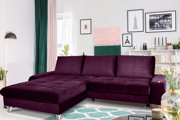 Rohová sedačka Hermon (L) (fialová) je stylový a pohodlný nábytek, který bude skvělým doplňkem vašeho obývacího prostoru. Sedačka je vyrobena z kvalitních materiálů a má čalounění v látce se sametovým povrchem, které vytváří dojem luxusu. Sedačka je rozkládací a má dva úložné prostory vedle sebe, takže máte dost místa pro uložení všech věcí. Výplň sedačky kombinuje pěnovou vrstvu T30 a pružiny Falliste, čímž zaručuje maximální komfort. Nožičky jsou ve tvaru písmene V a vpředu jsou kovové, zatímco vzadu jsou plastové. Rozměr plochy na spaní je 225 x 130 cm a výška sezení je 44 cm. Sedačka je dodávána ve třech balících, které se skládají ze dřeva a textilie. Pokud hledáte stylovou a pohodlnou sedačku, rohová sedačka Hermon (L) (fialová) je tou správnou volbou pro vás.