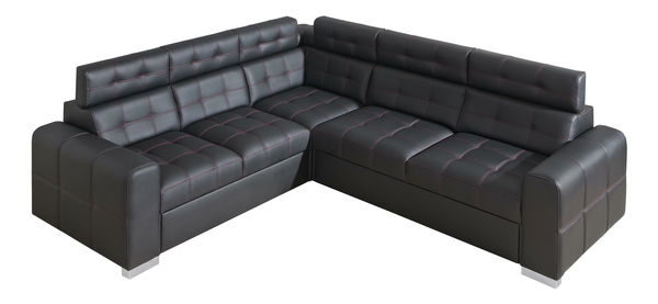 Rohová sedačka z ekokůže Iberis je elegantní, pohodlná i praktická. Tmavá ekokůže s barevným prošíváním se hodí do obývacího pokoje i kanceláře. Sedačka má úložný prostor a po rozložení se dá využít i na spaní. Opěrky hlavy jsou polohovatelné a tak si můžete dopřát skutečné pohodlí při sledování TV nebo čtení. Dostupná v levém i pravém provedení. Sezení je pružinové.