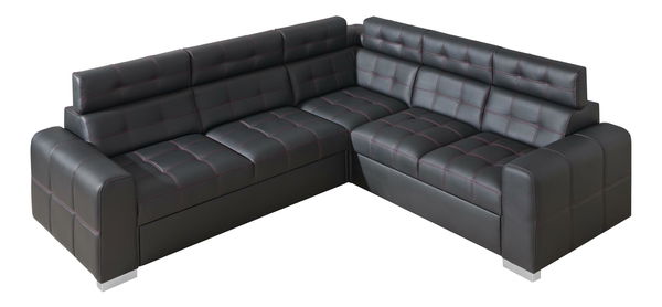 Rohová sedačka z ekokůže Iberis je elegantní, pohodlná i praktická. Tmavá ekokůže s barevným prošíváním se hodí do obývacího pokoje i kanceláře. Sedačka má úložný prostor a po rozložení se dá využít i na spaní. Opěrky hlavy jsou polohovatelné a tak si můžete dopřát skutečné pohodlí při sledování TV nebo čtení. Dostupná v levém i pravém provedení. Sezení je pružinové.