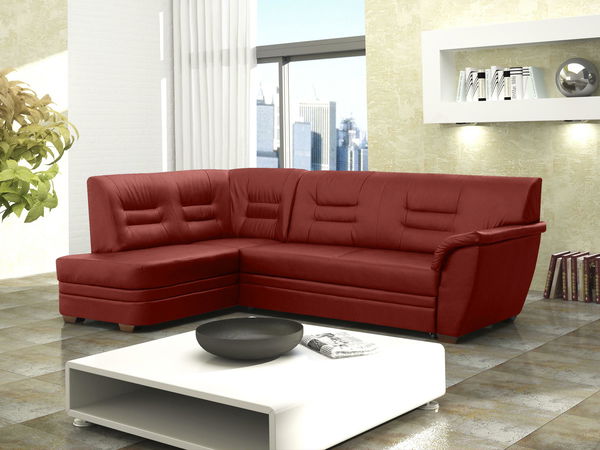 Rohová sedačka s pohodlným sklonem opěrky zad. Sezení na ní bude dokonalým relaxem. Dřevěné nožičky jí přidávají na retro designu. V případě potřeby přenocovat návštěvu sedačku jednoduše rozložíte a z úložného prostoru vyberete povlečení a polštáře.
