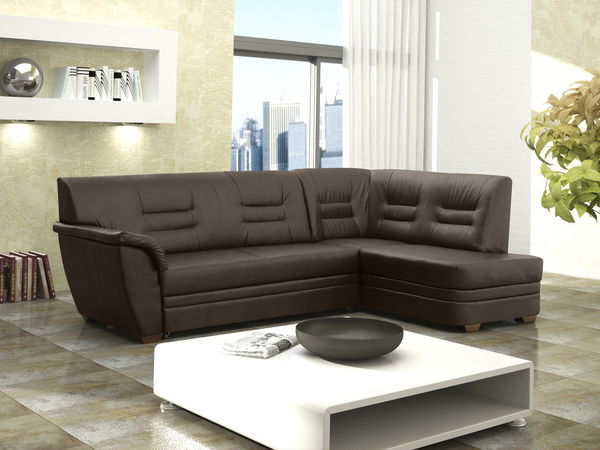 Rohová sedačka s pohodlným sklonem opěrky zad. Sezení na ní bude dokonalým relaxem. Dřevěné nožičky jí přidávají na retro designu. V případě potřeby přenocovat návštěvu sedačku jednoduše rozložíte a z úložného prostoru vyberete povlečení a polštáře.