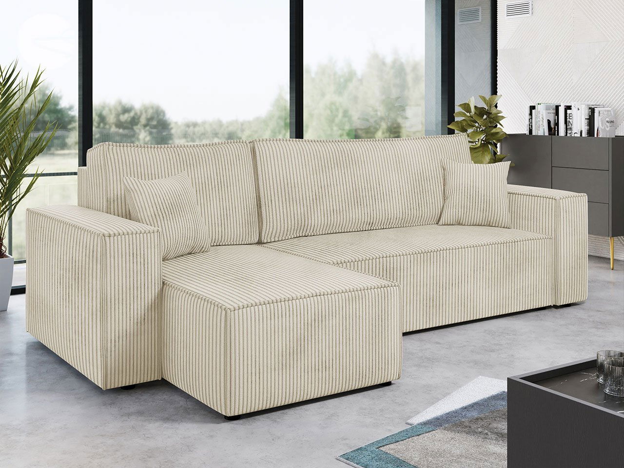 ZobrazitRozkládací pohovka s funkcí spaní je model s mimořádnou funkčností a jedinečným designem. Její jedinečnou vlastností je, že se dá rozložit, což z ní činí ideální místo pro odpočinek a spánek. Potěší také svým zpracováním. Žebrovaná látka jí dodává elegantní charakter a zajímavý vzhled. To však není všechno! Stačí jen chvilka, abyste tuto rohovou pohovku proměnili na prostornou postel, která vám poskytne místo pro regenerační spánek. Takto si můžete užívat pohodlí nejen během každodenních chvil odpočinku, ale také během dlouhých a pohodových nocí. Tato varianta byla vybavena kontejnerem na lůžkoviny, který vám umožní uložit přikrývky, polštáře a další potřebné věci. Kromě toho bylo jeho opěradlo navrženo ve formě pohyblivých polštářů, které si můžete libovolně nastavit podle svých preferencí. Sedačka je nejen funkční, ale také krásný dekorativní prvek, který vnese do vašeho interiéru moderní a stylový nádech. Její volně stojící konstrukce vám umožní libovolně ji umístit kdekoli v místnosti, čímž získáte naprostou volnost při jejím uspořádání.