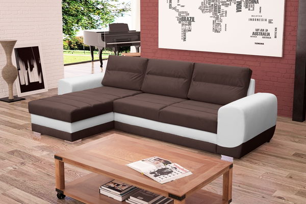 Rohová sedací souprava Kalan (hnědá + bílá) (L)