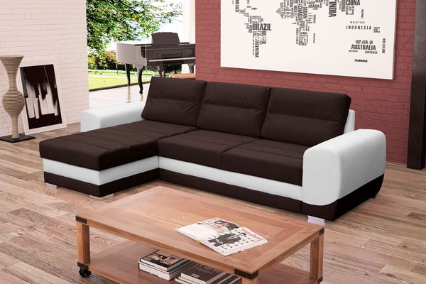 Rohová sedací souprava Kalan (tmavěhnědá + bílá) (L)