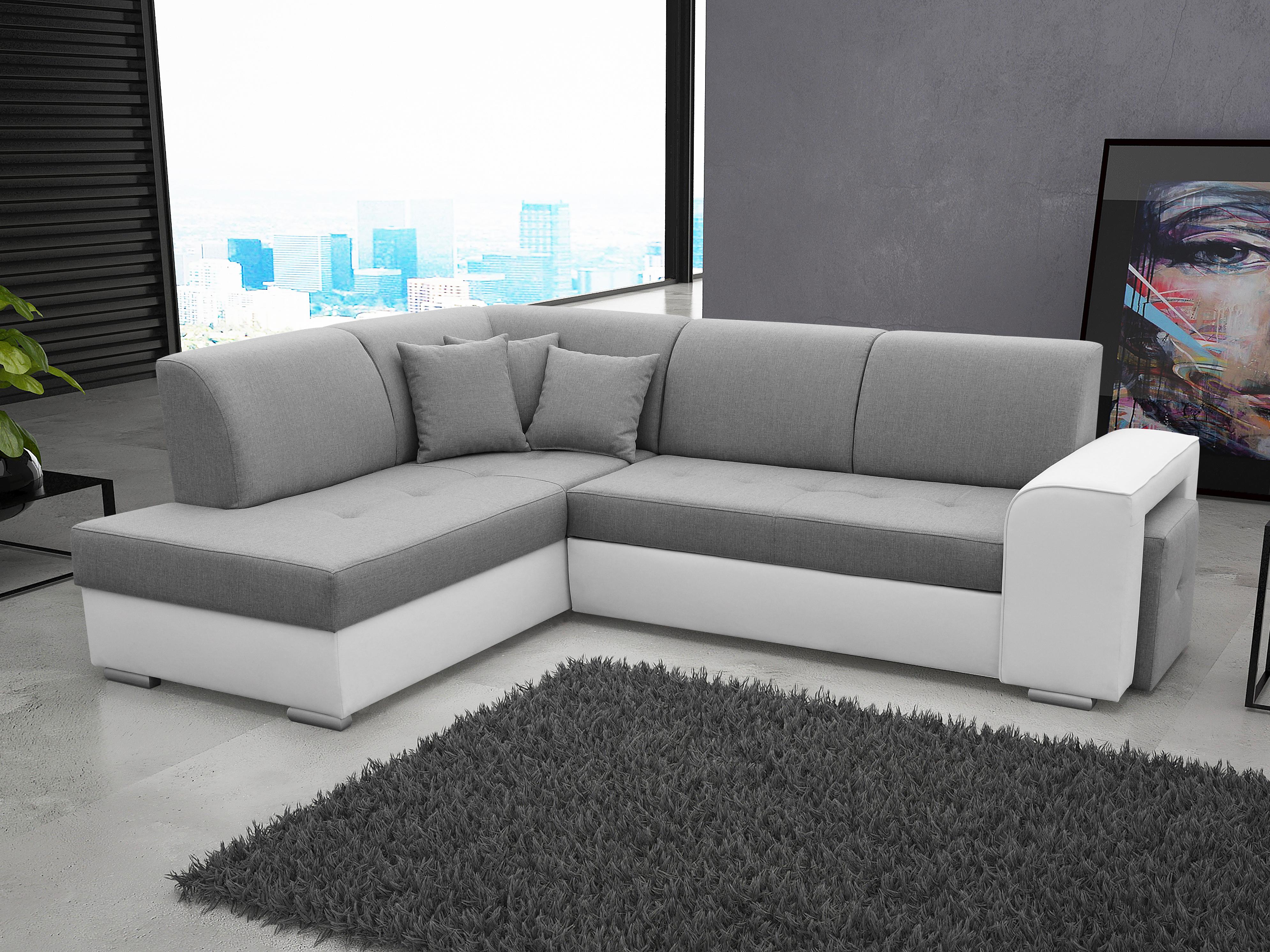 Rohová sedací souprava Kalmia (šedá + bílá) (L)