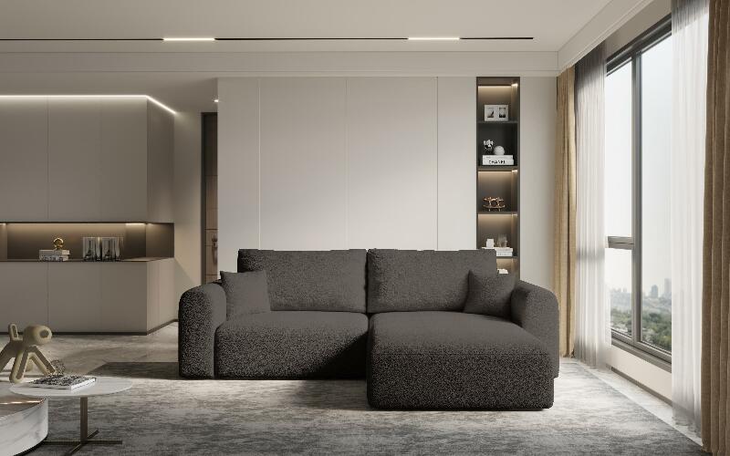 Vychutnejte si chvíle pohody a relaxu při knize či sledování oblíbeného seriálu v televizi na této elegantní rohové sedačce Karimo. Oblejší tvary přinesou do vašeho obývacího pokoje přitažlivost a zútulní ji. Sedačku lze v případě potřeby i rozložit a lze tak využít k příležitostnému přespání. Sedačka disponuje také úložným prostorem, kam si můžete uložit ložní prádlo a polštáře.