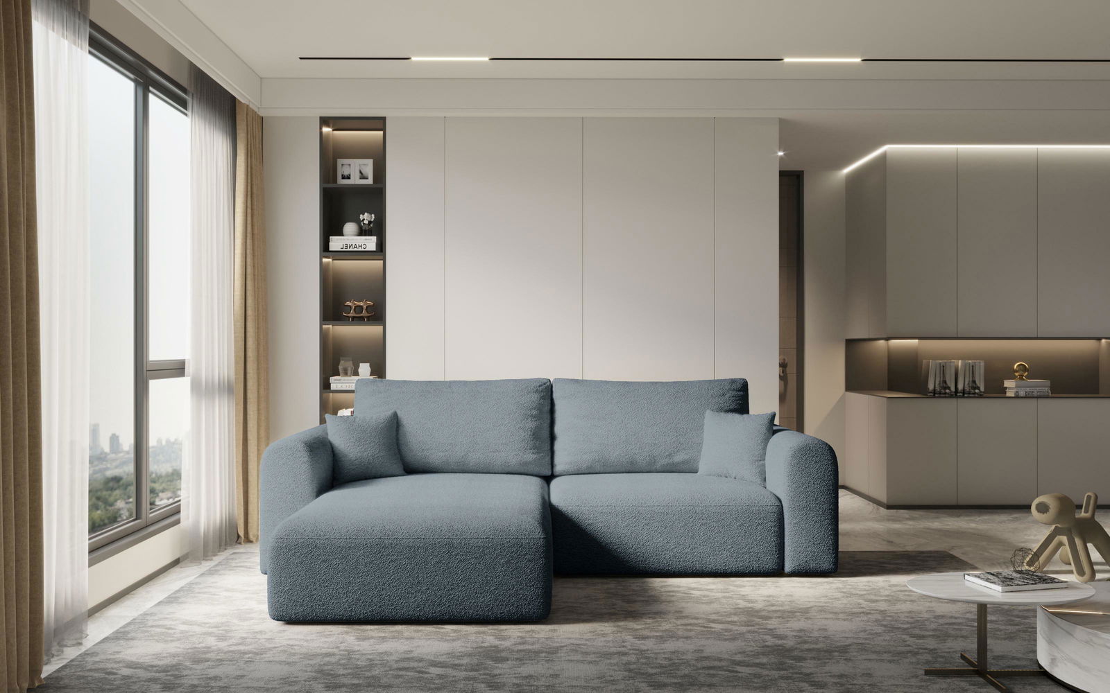 Vychutnejte si chvíle pohody a relaxu při knize či sledování oblíbeného seriálu v televizi na této elegantní rohové sedačce Karimo. Oblejší tvary přinesou do vašeho obývacího pokoje přitažlivost a zútulní ji. Sedačku lze v případě potřeby i rozložit a lze tak využít k příležitostnému přespání. Sedačka disponuje také úložným prostorem, kam si můžete uložit ložní prádlo a polštáře.