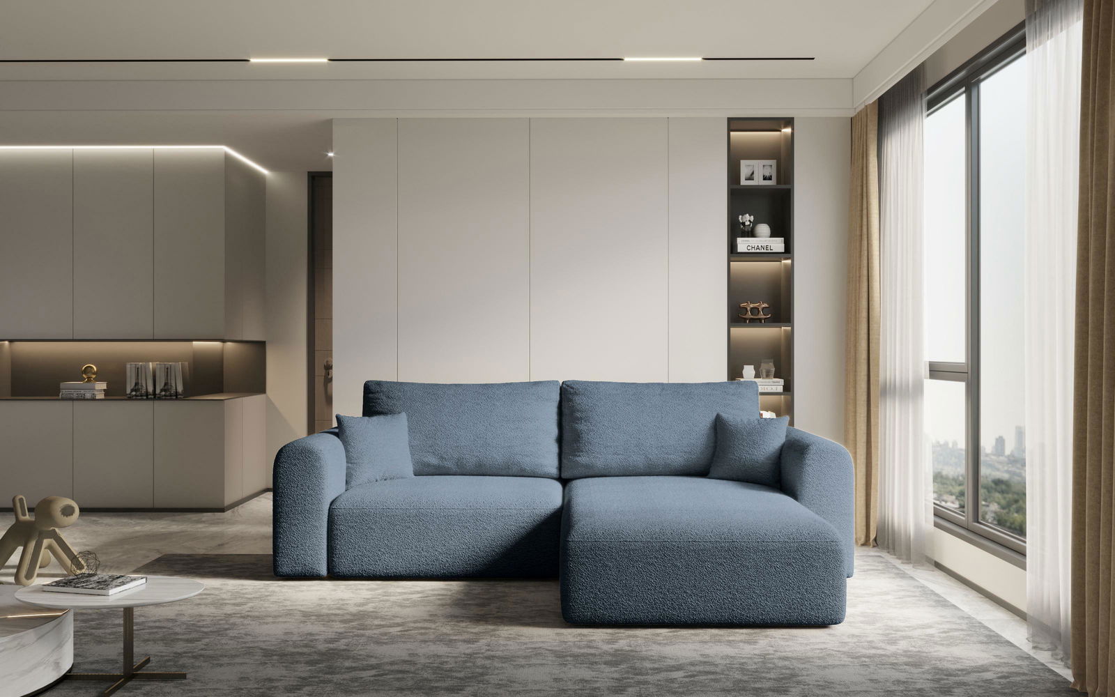 Vychutnejte si chvíle pohody a relaxu při knize či sledování oblíbeného seriálu v televizi na této elegantní rohové sedačce Karimo. Oblejší tvary přinesou do vašeho obývacího pokoje přitažlivost a zútulní ji. Sedačku lze v případě potřeby i rozložit a lze tak využít k příležitostnému přespání. Sedačka disponuje také úložným prostorem, kam si můžete uložit ložní prádlo a polštáře.