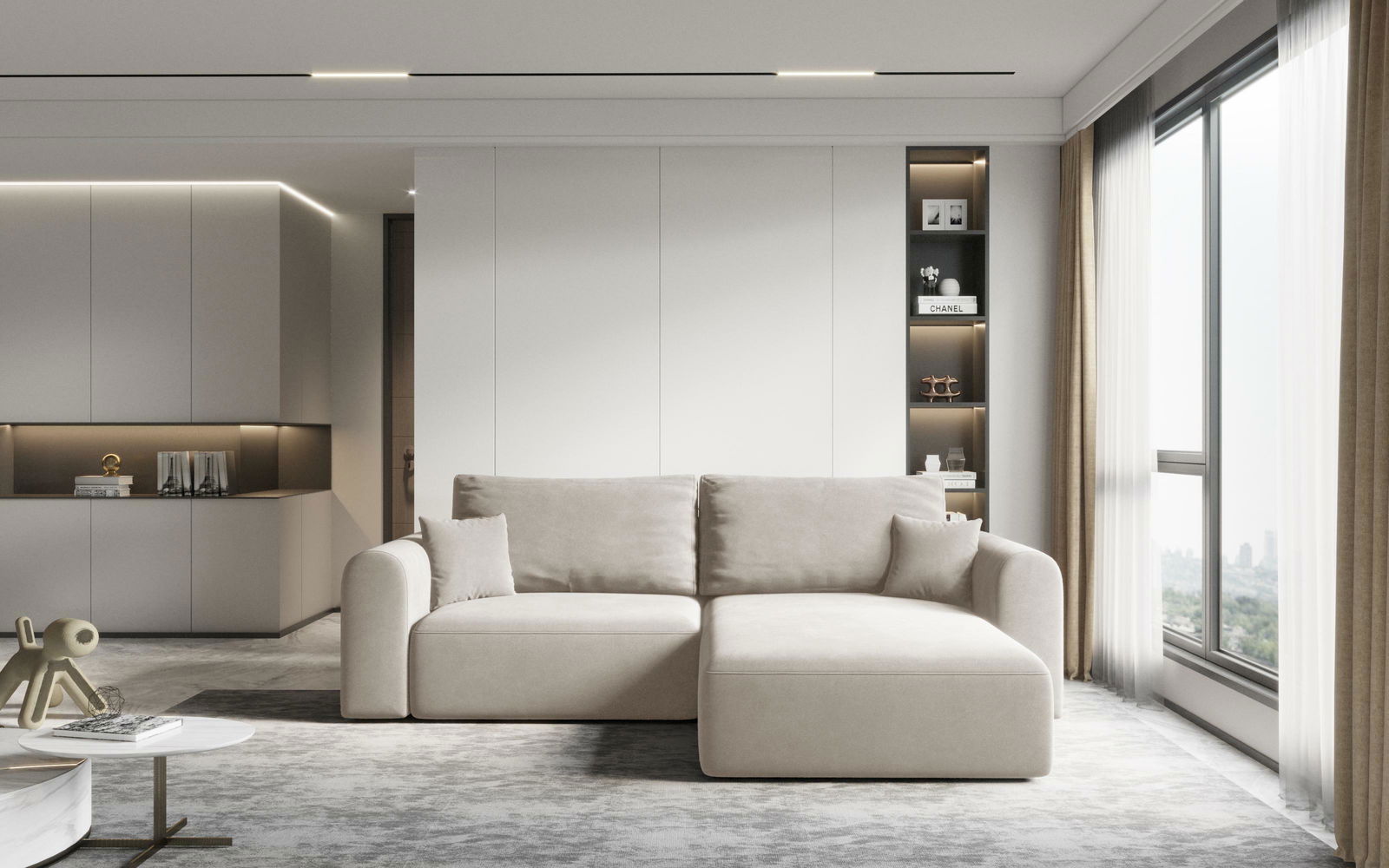 Vychutnejte si chvíle pohody a relaxu při knize či sledování oblíbeného seriálu v televizi na této elegantní rohové sedačce Karimo. Oblejší tvary přinesou do vašeho obývacího pokoje přitažlivost a zútulní ji. Sedačku lze v případě potřeby i rozložit a lze tak využít k příležitostnému přespání. Sedačka disponuje také úložným prostorem, kam si můžete uložit ložní prádlo a polštáře.
