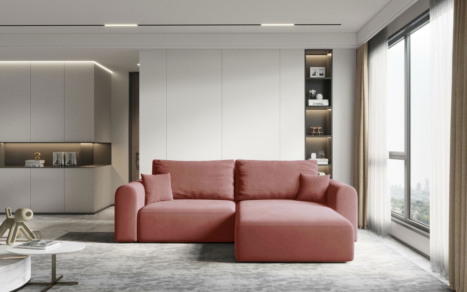 Vychutnejte si chvíle pohody a relaxu při knize či sledování oblíbeného seriálu v televizi na této elegantní rohové sedačce Karimo. Oblejší tvary přinesou do vašeho obývacího pokoje přitažlivost a zútulní ji. Sedačku lze v případě potřeby i rozložit a lze tak využít k příležitostnému přespání. Sedačka disponuje také úložným prostorem, kam si můžete uložit ložní prádlo a polštáře.