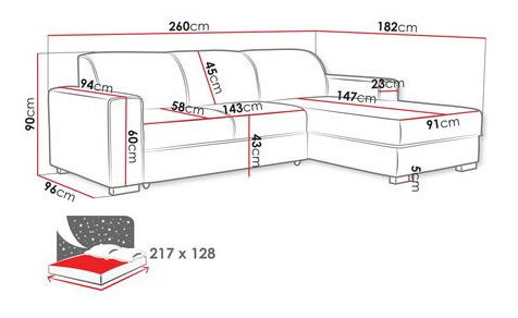 ZobrazitRohová sedací souprava je ideální volbou pro ty, kteří hledají pohodlí a styl. Rohová sedačka do obývacího pokoje Karmittes je základem víkendového lenošení. Nabízí spoustu prostoru k sezení a relaxaci v ležící poloze, poskytuje uspokojivé podmínky například pro sledování filmů. Podlouhlá pohovka je také skvělým místem pro odpolední spánek a vyložením nohou na ni si můžete sednout s oblíbenou knihou. Moderní rozkládací sedačka má také prostorný prostor na spaní. Po rozložení poskytuje pohodlné podmínky pro spaní každý den. Skvěle se hodí i jako zásoba pro příležitostné přenocování. Otoman v sobě ukrývá také úložný prostor. Tento prostorný úložný prostor vám umožní diskrétně uložit polštáře, peřiny nebo náhradní přikrývky pro chladnější večery. Rozměry: délka: 260 cm, šířka: 182 cm, výška: 90 cm, plocha na spaní: 217 x 128 cm, rozměry úložného prostoru: délka: 175 cm, šířka: 68 cm, výška: 21 cm Rohová strana: levá nebo pravá Provedení: konstrukce : 6 dřevo + 16 mm silná dřevotříska, sedák: T30/38 pěna + vlnitá pružina, opěradlo: T30/38 pěna + elastický pás, rozkládací, automatické rozkládání, funkce spánku, úložný prostor, dřevěné nohy, trvale pevné čalouněné opěradlo (sedačka je volně stojící) měsíců