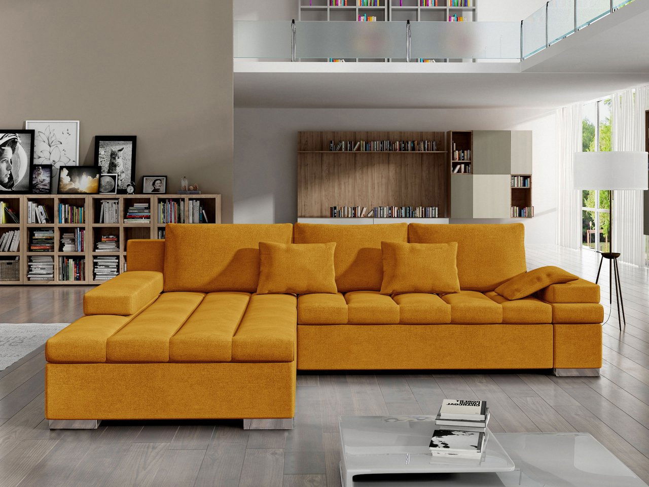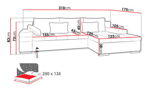 ZobrazitRohová sedačka je ideální volbou pro ty, kdo hledají pohodlí a styl. Rohovou rozkládací sedačku Kanton si zamilují lidé, kteří si cení pohodlí, módního designu a vysoké funkčnosti čalouněného nábytku. Nábytek má úložný prostor na ložní prádlo. Další místo ke spaní se hodí, když přijedou na návštěvu hosté. Sada obsahuje pohodlné polštáře se zipy. Rohová sedačka vděčí za svůj elegantní vzhled moderní konstrukci a zajímavému prošívání podél sedáku. Tento kus nábytku bude bezpochyby ozdobou vašeho obývacího pokoje a ideálním místem pro setkání s vašimi blízkými. Rozměry: šířka: 310 cm hloubka: 175 cm výška: 83 cm plocha na spaní: 250 x 135 cm rozměry úložného prostoru: 152 x 55 x 21 cm Rohová strana: levá nebo pravá Provedení: dřevěný rám + dřevotříska vysoce pružinová pěna T 2 zip funkce spánku úložný prostor elegantní chromové nohy volně stojící rohová sedačka (opěradlo potažené látkou) Záruční doba: 24 měsíců