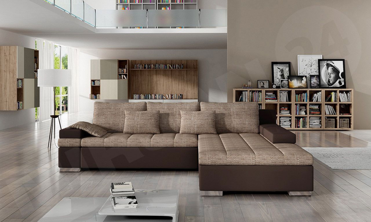 Rohová sedací souprava Katana (tmavě hnědá + béžová)