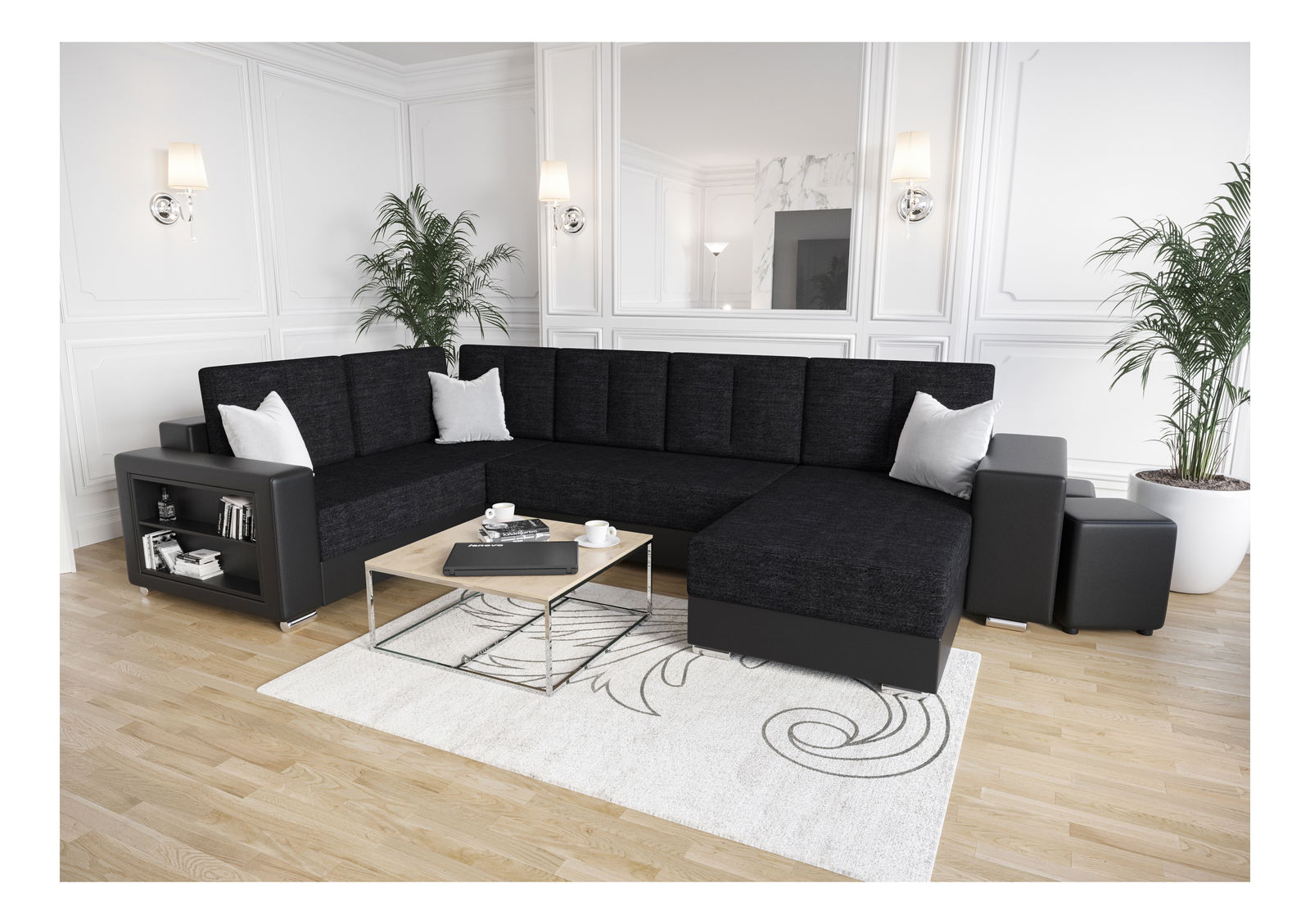 Rohová sedací souprava Kin (černá + bílá) (L)