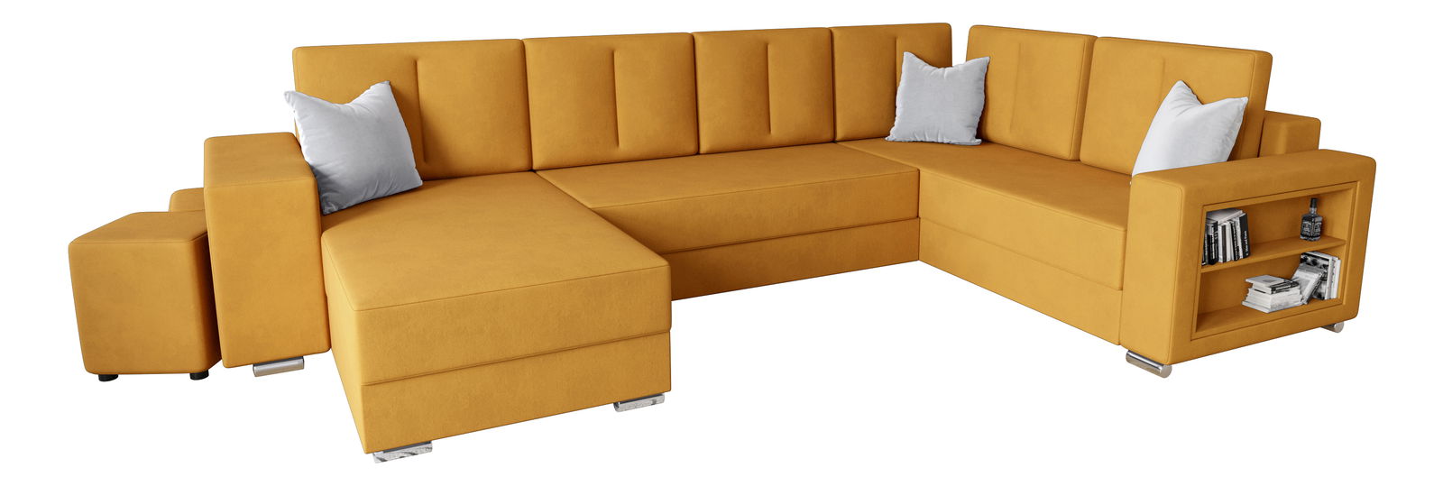 ZobrazitRohová sedací souprava - Kin (žlutá) je perfektní volbou pro ty, kteří hledají moderní a pohodlný nábytek do svého obývacího prostoru. S jeho výškou pohyblivou od 67 do 90 cm a šířkou 326 cm nabízí dostatek místa pro sezení pro celou rodinu. Souprava má hloubku 180 cm, která poskytuje dostatek prostoru pro relaxaci. Jeho žlutá barva dodává místnosti svěží a jasný vzhled, který zvýrazňuje moderní a elegantní design. Souprava je vyrobena z kvalitních materiálů a zaručuje vysokou kvalitu a trvanlivost. S rohovým uspořádáním a pohodlnými sedáky a opěrkami nabízí tato sedací souprava dokonalé místo k relaxaci a odpočinku.