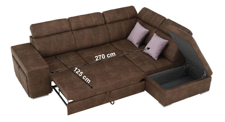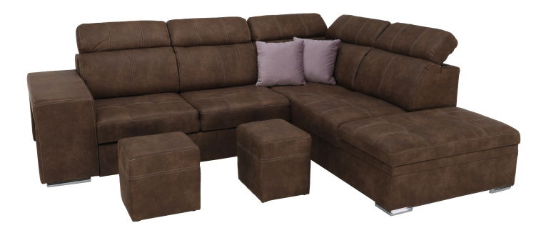 ZobrazitStylová rohová sedačka Lanza s polohovacím záhlavím vám poskytne komfort o jakém jste vždy snili. Součást sedačky jsou také 2 taburetky, které jsou zasunuty pod opěrka ruky a vpřípadě poteby je můžete použít k sezení ale vyložení nohou. Sedačka je rozkládací s úložným prostorem a plocha spaní má rozměry 120 x 190 cm. Vybrat si můžete barvu čalounění sedačky i polštářů. Dostupné levé i pravé provedení.