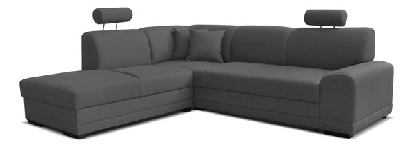 Čisté tvary, jednoduchost, elegance. To jsou vlastnosti rohové sedačky Laon II vyrobené v provedení tmavě šedá barva a levá strana. Sedák je vyroben z pružiny, čímž je zaručen komfort měkkého sezení a tvarová trvanlivost sedačky. Sedačka je rozkládací, má úložný prostor, stojí na nožičkách v provedení tmavá barva a vybavená je dvěma výškově nastavitelnými opěrkami hlavy. Plocha na spaní má po rozložení rozměr 189 cm délka a 124 cm šířka. Na výběr jsou i další krásné barevné kombinace.