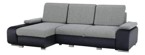 Elegantní rohová rozkládací sedací souprava Late vám poskytne dostatek úložného prostoru a po rozložení i prostor na spaní. Sedačka má kvalitní bonelové sezení. Sedačka je v provedení černá ekokůže v kombinaci se šedou látkou Portland.