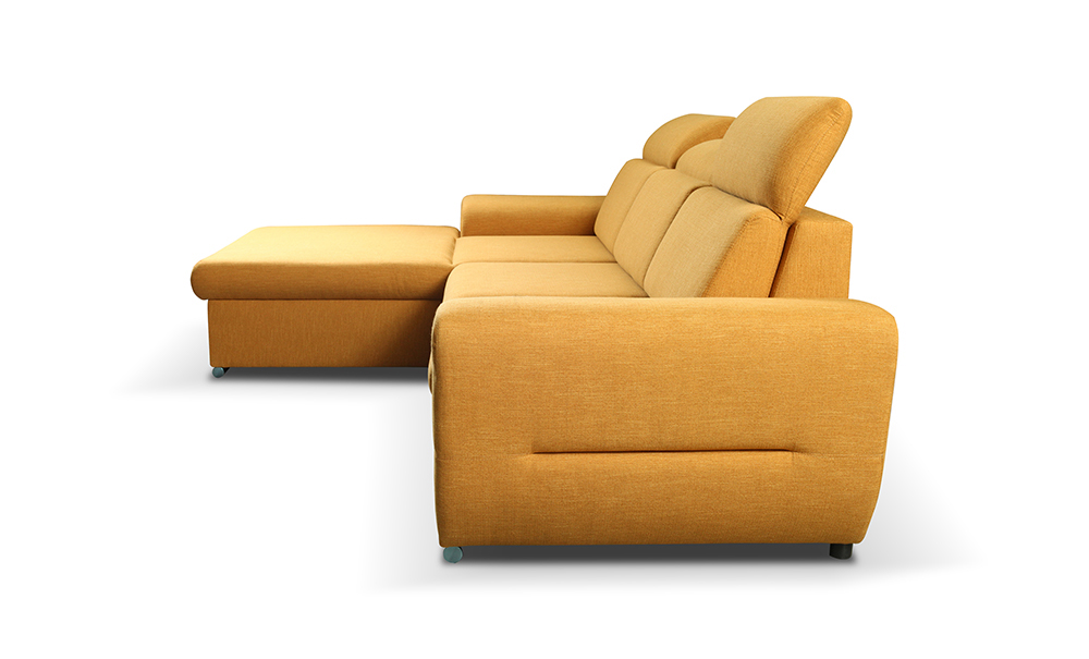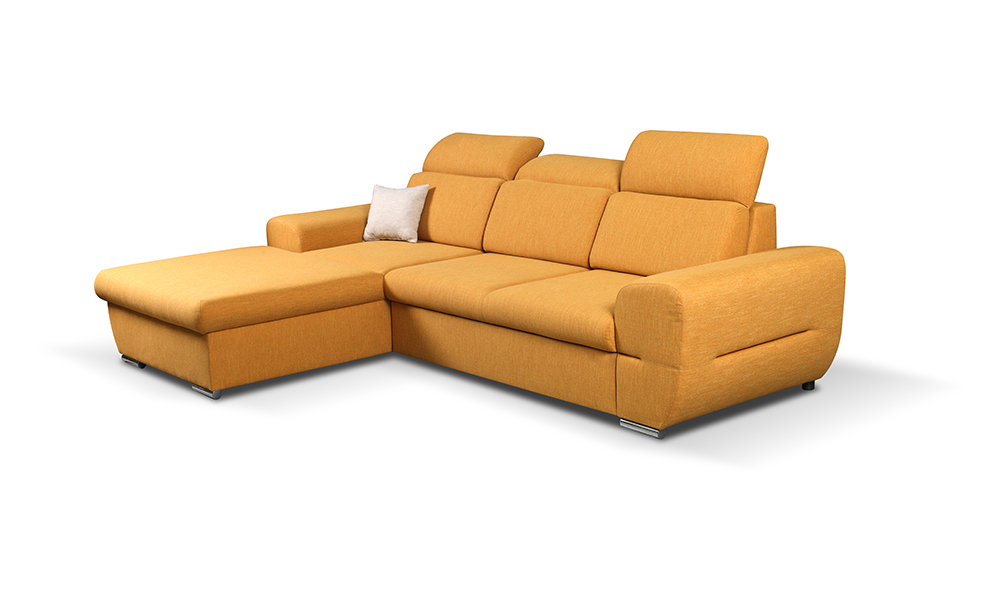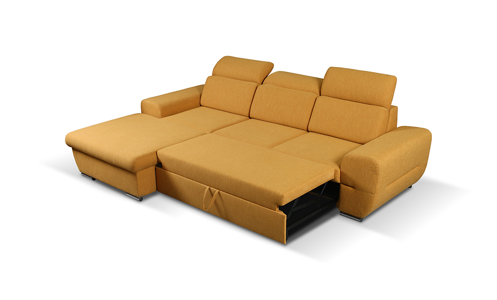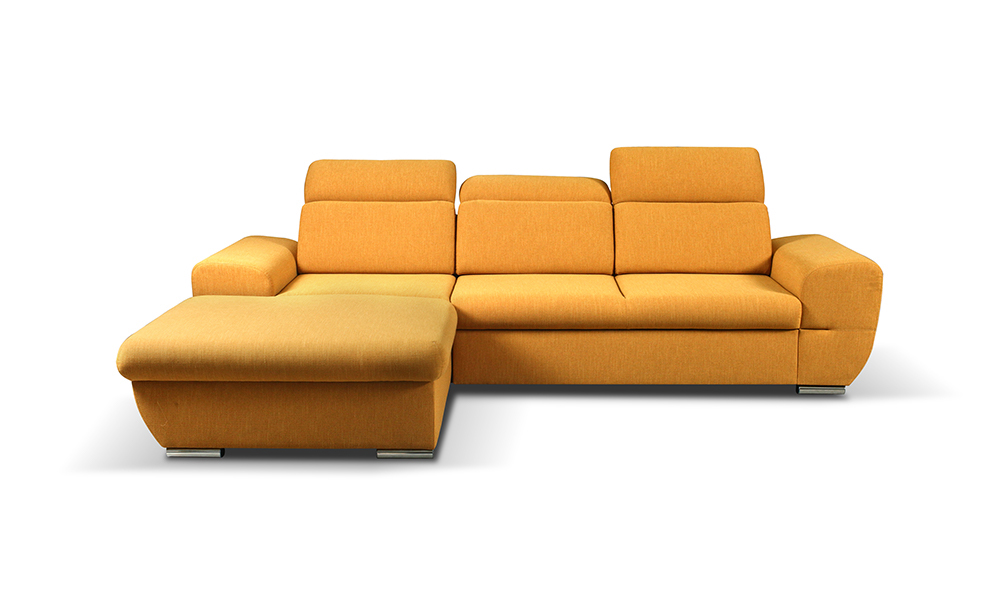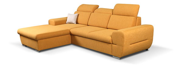 Sedačka Lenzie v krásné, zářivé, oranžovej barvě. Sedačku lehce rozložíte a máte tak dostatek místa na spaní pro hosty.