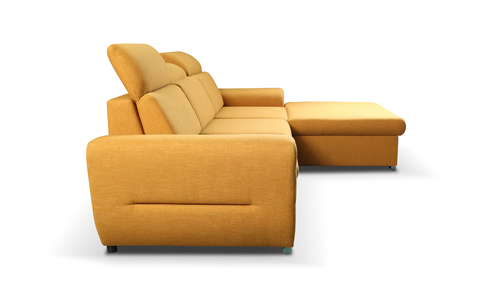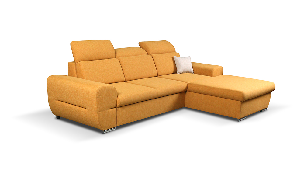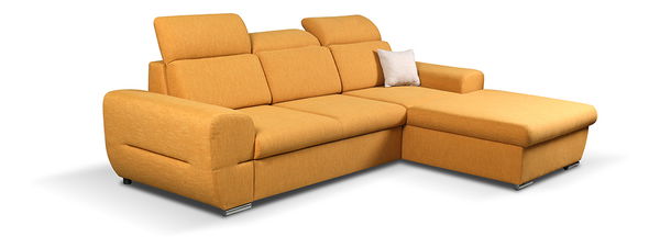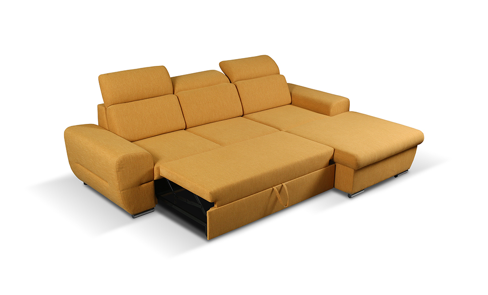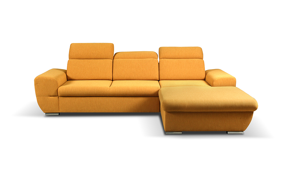 Sedačka Lenzie v krásné, zářivé, oradžovej barvě. Sedačku lehce rozložíte a máte tak dostatek místa na spaní pro hosty.