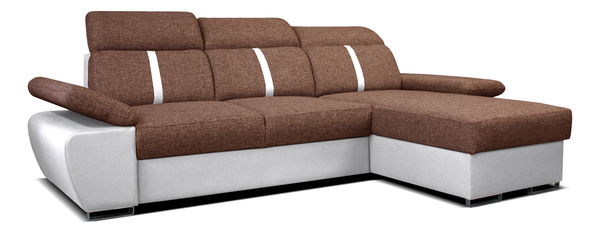 Unikátní rohová sedací souprava, která dodá vašemu obývacímu pokoji vkus a eleganci. Zaručí vám dostatečné pohodlí a oceníte její praktické funkce. Sedací část je vyplněna pur pěnou a vlnitými pružinami. Sedací souprava je potažena koženkou a šenilem. Područky a opěrky hlavy jsou polohovatelné podle potřeby. Pokud poterbujete prostor na přespání, soupravu jednoduše rozložíte. Výhodou je i úložný prostor, do kterého si umíte uložit ložní prádlo a další doplňky. Pravé provedení sedací soupravy.