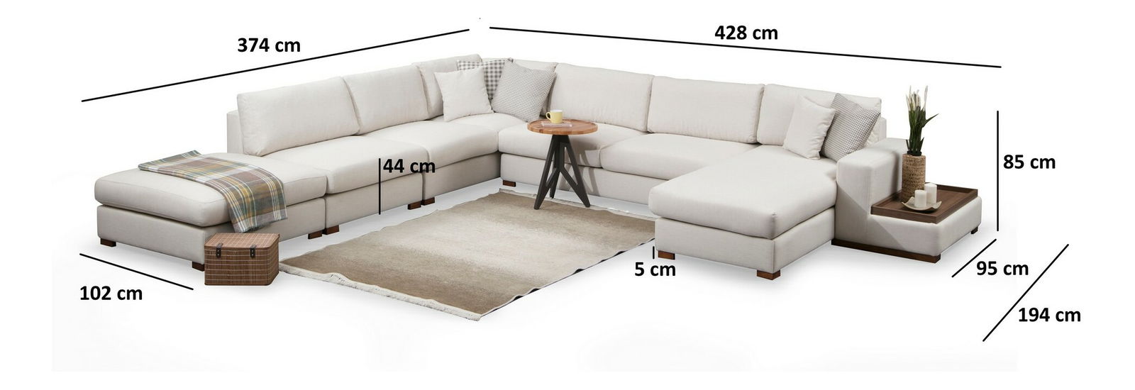 Rohová sedačka - Lopy 5(L) v matném béžovém provedení je skvělým doplňkem pro váš obývací prostor. Sedačka má výšku 85 cm, šířku 374-428 cm a hloubku 95-102 cm, což zaručuje pohodlné sezení pro celou rodinu. Materiál z bukového dřeva a dřevotřísky zaručuje pevnost a trvanlivost celého kusu nábytku. Sedačka je vyrobena z kvalitních materiálů a její design bude dokonale ladit s vaším interiérem. Užijte si pohodlné chvíle s rodinou a přáteli na této útulné rohové sedačce.