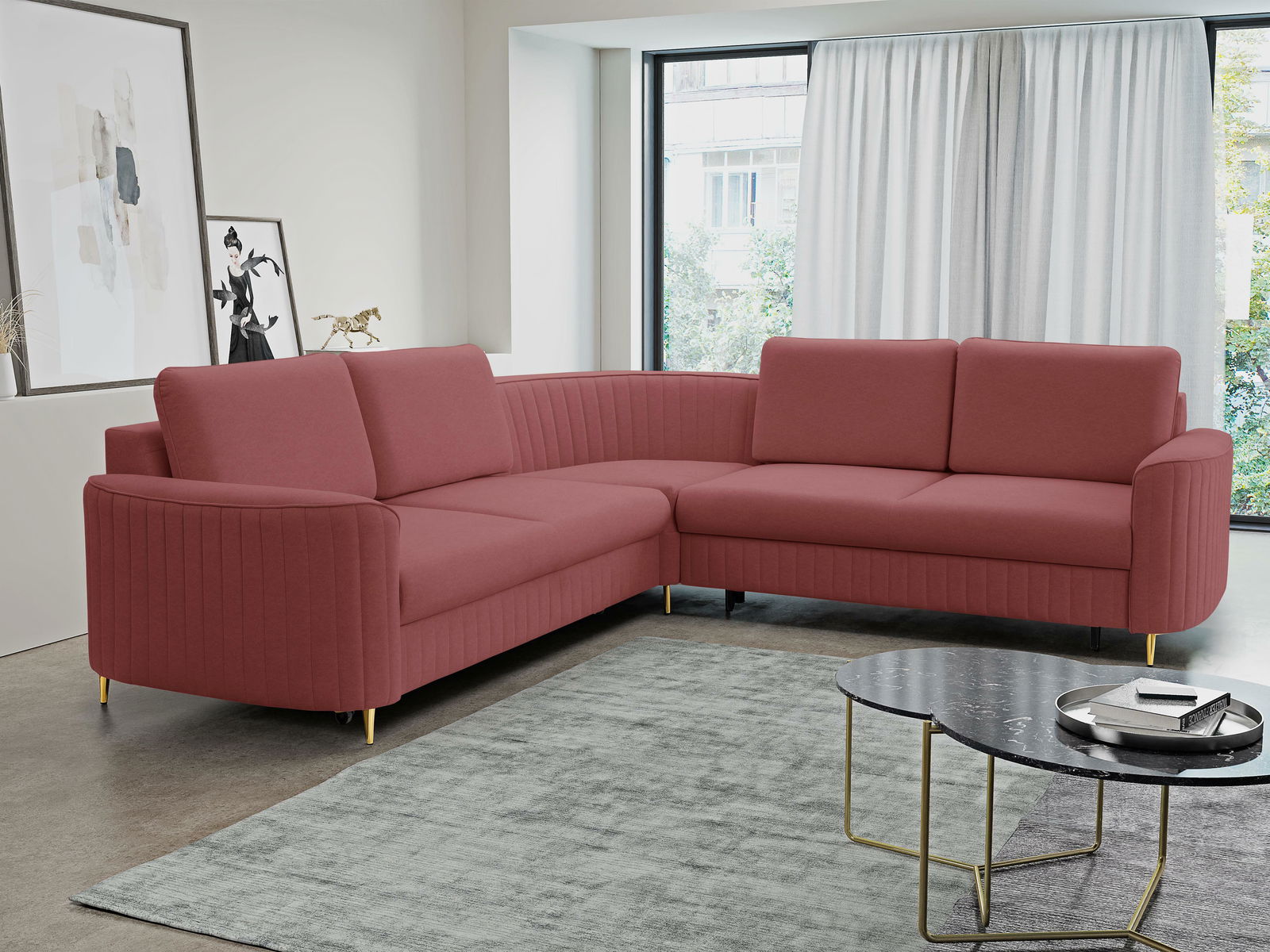 Rohová sedací souprava Loreeen (růžovočervená) (L)