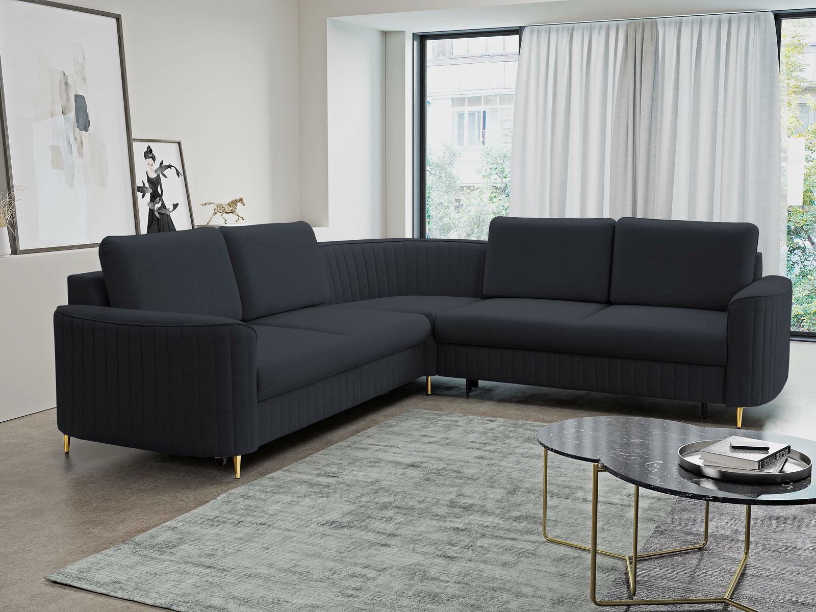 Rohová sedací souprava Loreeen (tmavě modrá) (L)