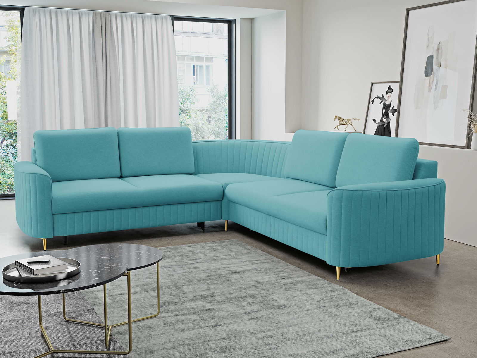 Rohová sedací souprava Loreen (tyrkysová) (P)