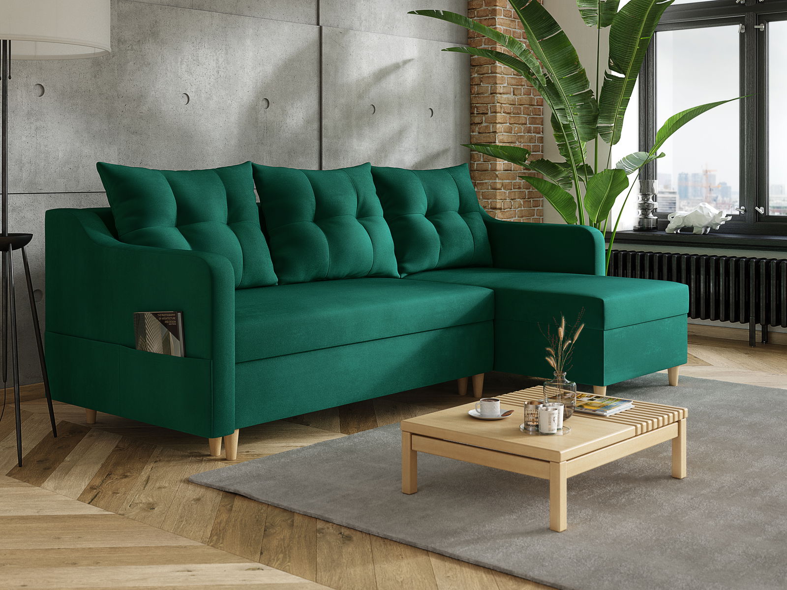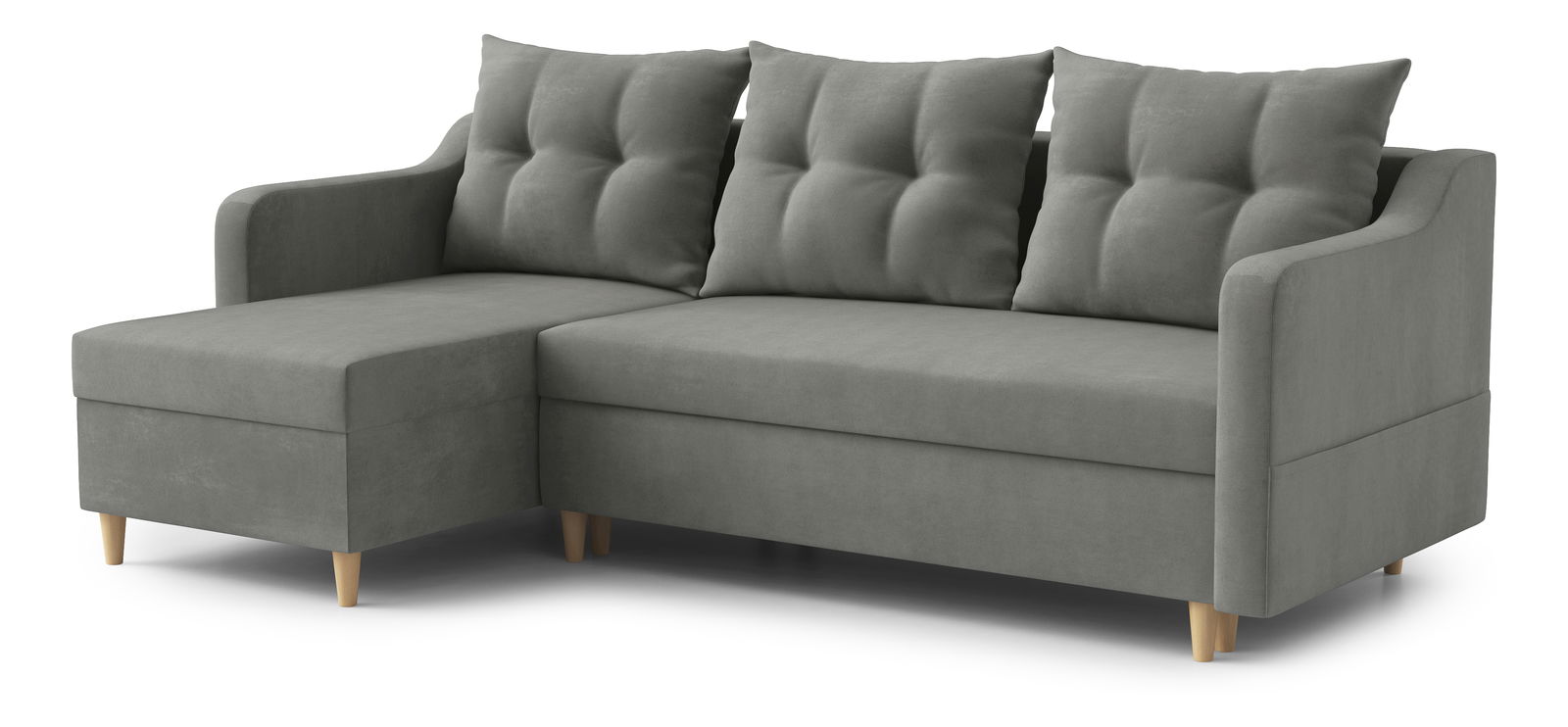 ZobrazitVychutnejte si styl a pohodlí s naší rohovou sedací soupravou s charakteristickými prošívanými poduškami. Design, který kombinuje dřevo a 18mm nábytkovou desku, vytváří pevný a stabilní rám, který je dokonale doplněn výplní sedáku a opěradla z bonellových pružin a 3 cm pěny T 30. Naturální barva dřevěných nohou (10 cm) a čalouněná zadní strana přidávají do vaší místnosti elegantní vzhled, zatímco úložný prostor v bílé barvě a pohodlná spací plocha (200x140 cm) nabízí praktickou funkčnost. Rozměry opěrek na ruce (55x10x90 cm) jsou ideální pro relaxaci a tři podušky ve formě opěradla zajišťují dodatečné pohodlí.