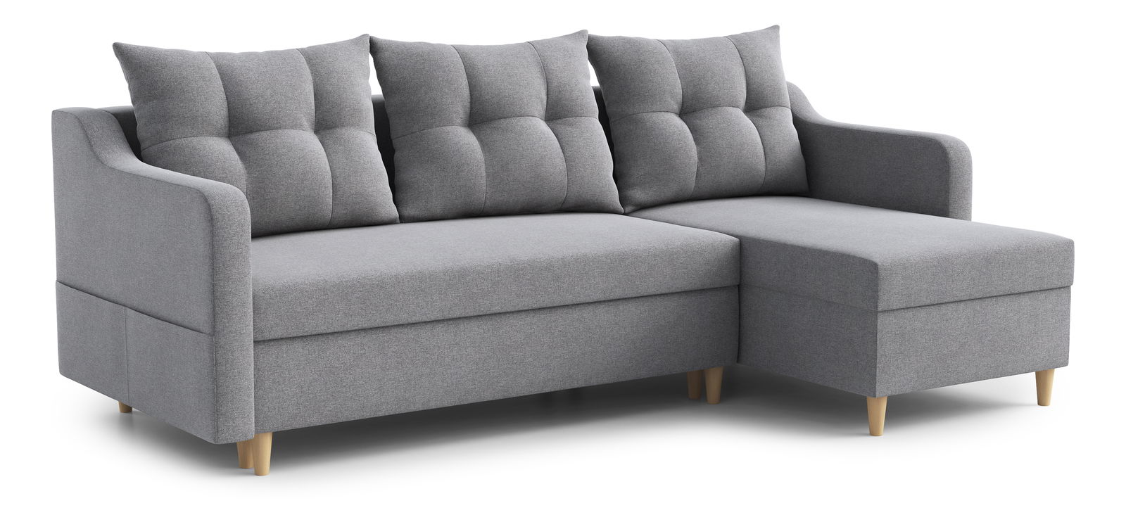 ZobrazitKombinujte styl a komfort s touto pohodlnou a estetickou rohovou sedačkou s prošívanými poduškami. Robustní rám ze dřeva a 18 mm nábytkové desky je pohodlně vyplněn díky bonellovým pružinám a 3 cm pěně T 30 v sedáku a opěradle. Dřevěné nohy s naturální barvou (10 cm výšky) a čalouněná zadní strana dodávají kousku šarm a eleganci, zatímco úložný prostor a prostorná spací oblast (200x140 cm) nabízí skvělou praktičnost. S rozměrnými opěrkami na ruce (55x10x90 cm) a třemi poduškami je tato rohová sedačka ideální pro volný čas a relaxaci.