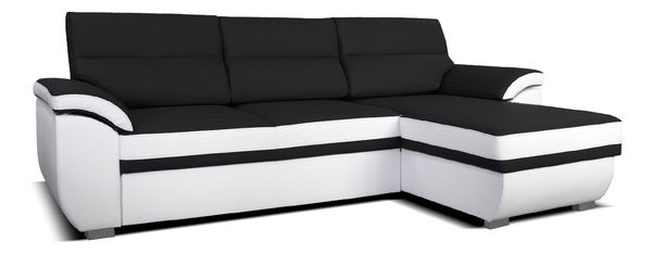 Pokud chcete, aby prostor Vašeho obývacího pokoje působil moderně, vyberte si rohovou sedačku Lucan. Luxusnímu a propracovanému designu neodolá žádná návštěva. Navíc, pokud návštěva bude chtít přenocovat, jednoduchým vysunutím sedací části získáte velkou plochu na spaní. V otomanu se po odklopení nachází úložný prostor, kde můžete uložit zřídka využívány polštáře, přikrývky či povlečení. Sedačka je čalouněná bílou koženkou a černým šenilem.