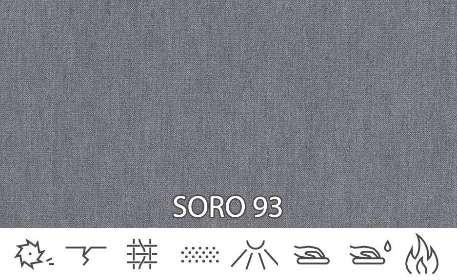Látka Soro je velurová potahová látka vyrobená ze 100% polyesteru o struktuře pletení. Je to měkká a na dotek jemná a příjemná potahová látka, která se neroztáhne. Získala vysoký výsledek v testu Martindale, až 100 000 cyklů. Znamená to, že je otěruvzdorná a nezůstanou v ní díry ani po několika letech používání. Látky s tímto výsledkem jsou zařazeny do materiálů vhodných pro použití na veřejných místech – například v autobusech. Odolává vůči častému používání. Látka Soro splnila směrnici Reach, díky čemuž neobsahuje škodlivé chemikálie.