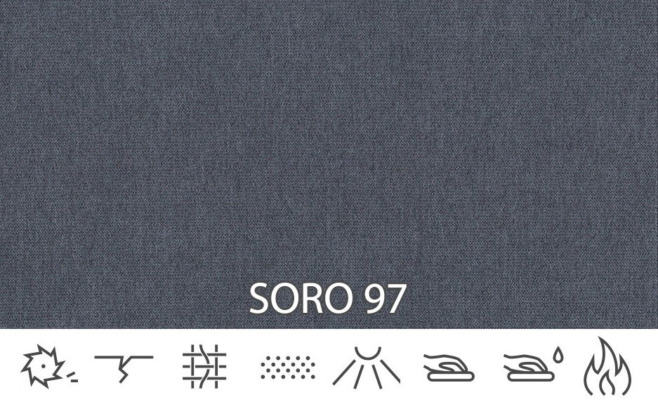 Látka Soro je velurová potahová látka vyrobená ze 100% polyesteru o struktuře pletení. Je to měkká a na dotek jemná a příjemná potahová látka, která se neroztáhne. Získala vysoký výsledek v testu Martindale, až 100 000 cyklů. Znamená to, že je otěruvzdorná a nezůstanou v ní díry ani po několika letech používání. Látky s tímto výsledkem jsou zařazeny do materiálů vhodných pro použití na veřejných místech – například v autobusech. Odolává vůči častému používání. Látka Soro splnila směrnici Reach, díky čemuž neobsahuje škodlivé chemikálie.