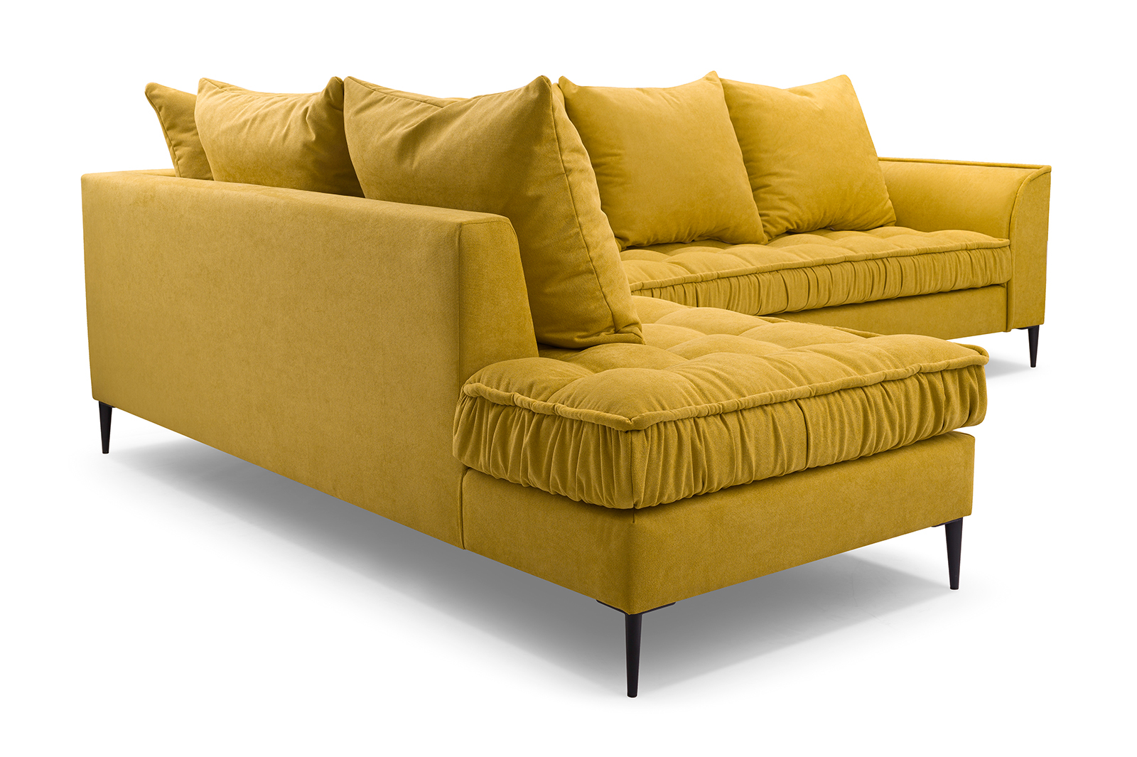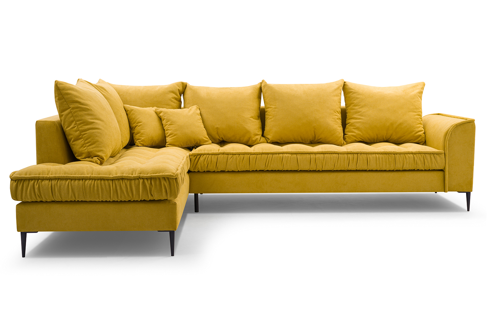 Rohová sedačka Lunara (žlutá) (L) o výšce 80 cm a hloubce 227 cm je skvělým doplňkem pro Váš obývací prostor. Tato moderní rohová sedačka má čalounění z velurové potahové látky Soro 40 vyrobené ze 100% polyesteru. a odolností proti opotřebení s testováním oděruvzdornosti Martindale až do 100 000 cyklů. Sedačka stojí na kovových nohách a má pružinový systém s pěnou T-30 a silikonem a výplní z falistých pružin. 50 cm. Rozměry otomanu jsou 93 x 227 cm a výška nožiček je 15,5 cm.