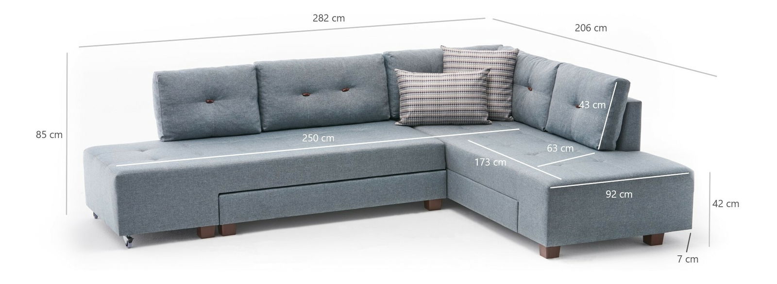 šířka: 280 cm výška: 85 cm hloubka: 206 cm