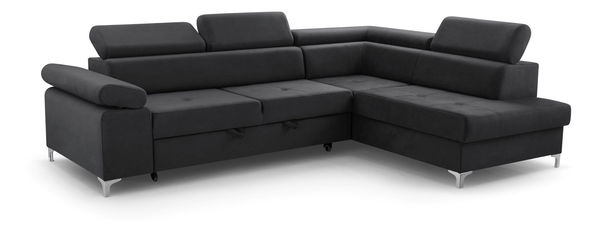 Rohová sedací souprava - Madeira (grafit) (P) je moderního stylu sedací souprava s masivním dřevěným rámem a dřevotřískovou konstrukcí. Nabízí pohodlné sezení díky bonellové pružině a pěně T 30. Opěrky jsou vyrobeny z kombinace pěny, silikonu a jsou doplněny potahovými lištami pro maximální komfort. Tato multifunkční sedačka má rozkládací mechanismus typu "delfín" a je vybavena úložným prostorem. Plocha na spaní má rozměry 127x203 cm, poskytující dostatečný prostor pro pohodlný odpočinek. Zadní strana sedačky je potažena stejnou látkou jako přední, což umožňuje její umístění do středu místnosti. Sedací souprava je dostupná ve tvaru "L" a má regulovatelné opěrky včetně opěrek hlavy a loktů, což zvyšuje komfort při sezení. Výška sedačky se zvednutou loketní opěrkou je 76 cm as opěrkou hlavy 95 cm.