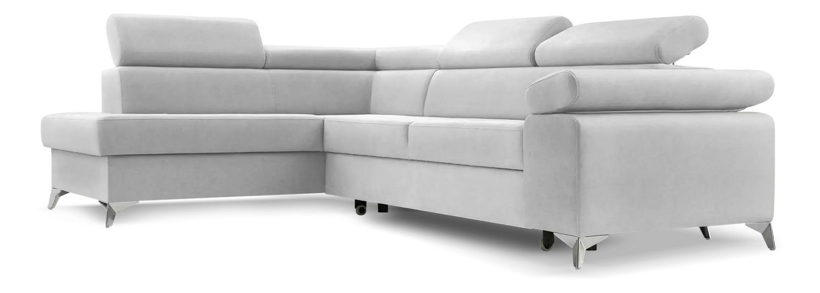 Rohová sedací souprava - Madeira (světle šedá) (L) je moderního stylu s rámem z masivního dřeva a dřevotřísky. Nabízí pohodlné sezení díky bonellové pružině a pěně T 30. Opěrky jsou vyrobeny z kombinace pěny, silikonu a jsou doplněny potahovými lištami, což zajišťuje maximální komfort. Tato multifunkční sedačka má rozkládací mechanismus typu "delfín" a je vybavena úložným prostorem. Plocha na spaní má rozměry 127x203 cm, což poskytuje dostatečný prostor pro pohodlný odpočinek. Zadní strana sedačky je potažena stejnou látkou jako přední, což umožňuje její umístění do středu místnosti. Sedací souprava je dostupná ve tvaru "L". Regulovatelné opěrky, včetně opěrek hlavy a loktů, zvyšují komfort při sezení, přičemž výška sedačky se zvednutou loketní opěrkou je 76 cm as opěrkou hlavy 95 cm.