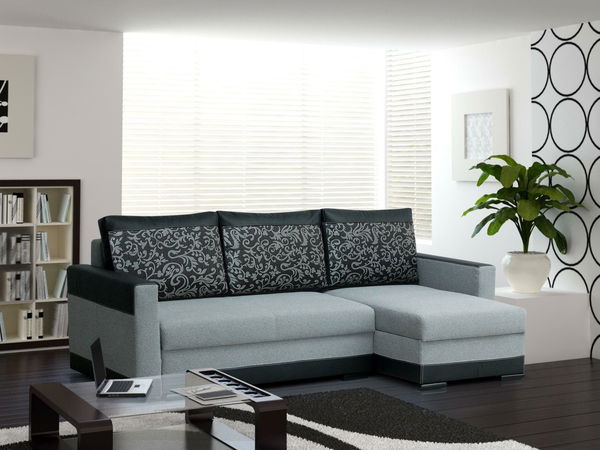 Rohová sedací souprava Mahonia (šedá + černá) (P)