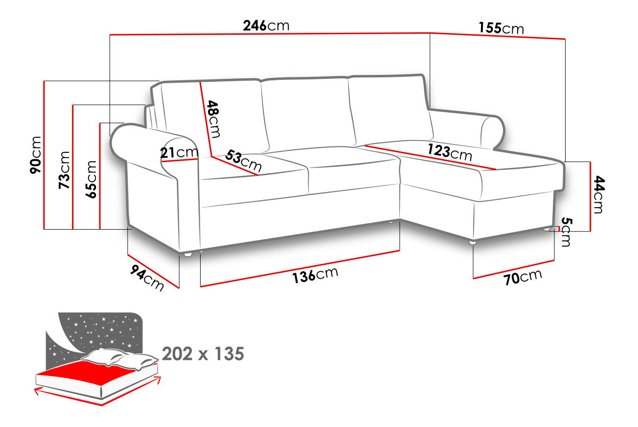 Rohová sedačka je ideální volbou pro ty, kdo hledají pohodlí a styl. Rohová sedačka Madrid zaujme nejen svým komfortem, ale také svým elegantním vzhledem! Rohová sedačka byla vyrobena po vzoru písmene „L“ a nabízí pohodlnou pohovku. Charakteristickým prvkem rohu jsou jemně zaoblené loketní opěrky – dělají z modelu elegantní vzhled! Použitá pěna a kvalitní komponenty jsou však zodpovědné za pohodlné používání v rohu. Rohová sedačka má navíc funkci na spaní a úložný prostor na ložní prádlo. Sklopení rohu je snadné a rychlé díky automatickým zařízením. Součástí soupravy jsou také polštáře, které vytvářejí pohodlné opěradlo. Rozměry: délka: 246 cm, šířka: 155 cm, výška: 90 cm, plocha na spaní: 202 x 135 cm Rohová strana: univerzální (při instalaci si zákazník vybere stranu) Provedení: rám: borové dřevo + dřevotříska, sedák: T25 / 42 pěna + vlnová model automat pro snadné rozložení, má funkci spánku úložný prostor na ložní prádlo plastové nohy, opěradlo ve formě pohyblivých polštářů, polštáře v sadě se zipem, sedačka není volně stojící model (záda není pokryta látkou) Rozměry úložného prostoru: - délka: 146 cm, - šířka: 24 měsíců