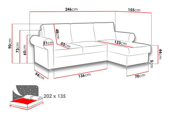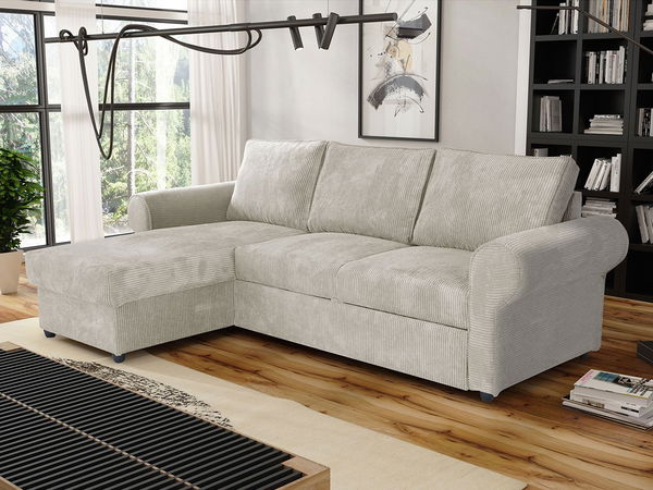 Rozkládací pohovka je ideální volbou pro ty, kteří hledají pohodlí a styl. Rohová pohovka Madrid s funkcí spaní byla navržena ve tvaru písmene L. Opěradlo nábytku tvoří pohyblivé polštáře a područky mají dekorativní zakřivení. Pohodlí rohové pohovky ovlivňují použité komponenty: vlnitá pružina a vrstva pěny. Zajímavým dekorativním detailem modelu Madrid je použita manšestrová látka. Její žebrovaná struktura dokonale zvýrazňuje tvar rohové pohovky. Kromě toho je pohovka Madrid vybavena funkcí spaní a úložným prostorem. Po rozložení má její plocha rozměry 202 x 135 cm, což zaručuje pohodlný spánek pro dvě osoby. Rozměry: délka: 246 cm, šířka: 155 cm výška: 90 cm, plocha na spaní: 202 x 135 cm, rozměry kontejneru: délka: 146 cm, šířka: 62 cm, výška: 21 cm Rohová strana: univerzální (zákazník si vybere stranu během montáže) Provedení: rám pěna T25/42 + vlnitá pružina, opěradlo: pěna T25/42, rozkládací rohová pohovka, automat pro usnadnění rozkládání, má funkci spánku, automatický kontejner na podestýlku, plastové nohy, opěradlo ve formě pohyblivých polštářů, polštáře na zip jsou součástí balení, rohová pohovka je volně Záruka: 24 měsíců