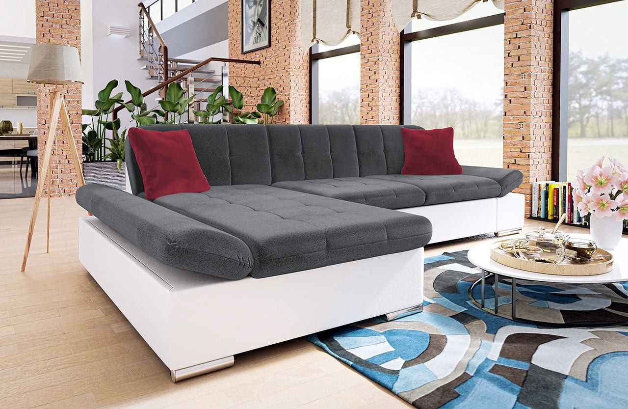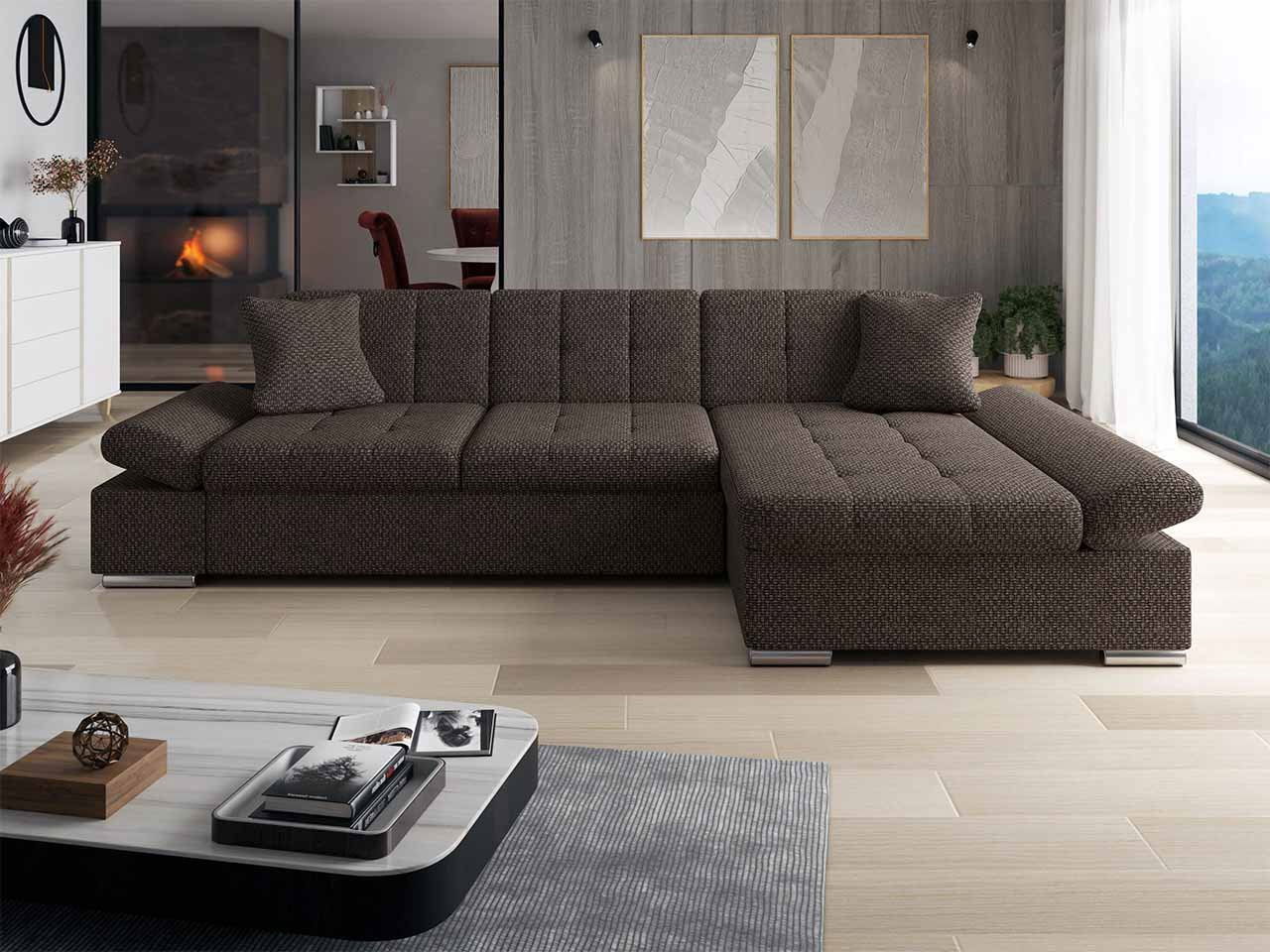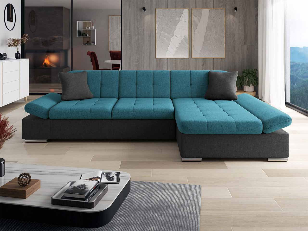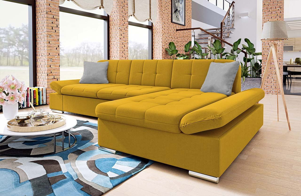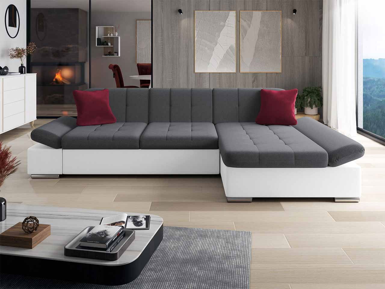 Rohová sedací souprava je ideální volbou pro ty, kteří hledají pohodlí a styl. Rohová pohovka Magnir je kus nábytku, který vnese do vašeho okolí závan svěžesti a umožní vám pohodlně si odpočinout po celodenní práci. Bude centrem odpočinku a rodinných setkání. Zajímavé kombinace různých odstínů poskytnou neomezené možnosti designu. Tento model nabízí také nastavitelné područky, které výrazně zvyšují kvalitu používání. Souprava obsahuje také polštáře na zip. Rohová sedačka do obývacího pokoje je volně stojící. Díky tomu si své interiéry zařídíte bez problémů a v souladu s vlastní aranžérskou vizí. Rozměry: délka: 278 cm, šířka: 161 cm, výška: 76 cm Rohová strana: levá nebo pravá Provedení: dřevěný rám + dřevotříska, polyuretanová pěna + vlnová pružina, bez funkce spánku, bez úložného prostoru, polštáře v ceně, polštáře na zip, chromované plast látkou), nastavení loketní opěrky Záruka: 24 měsíců
