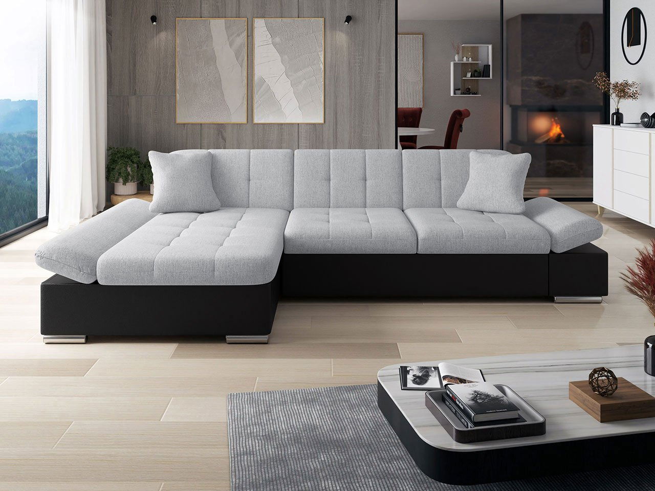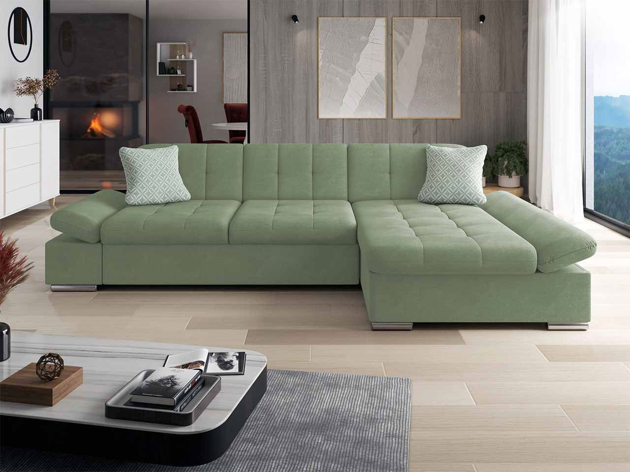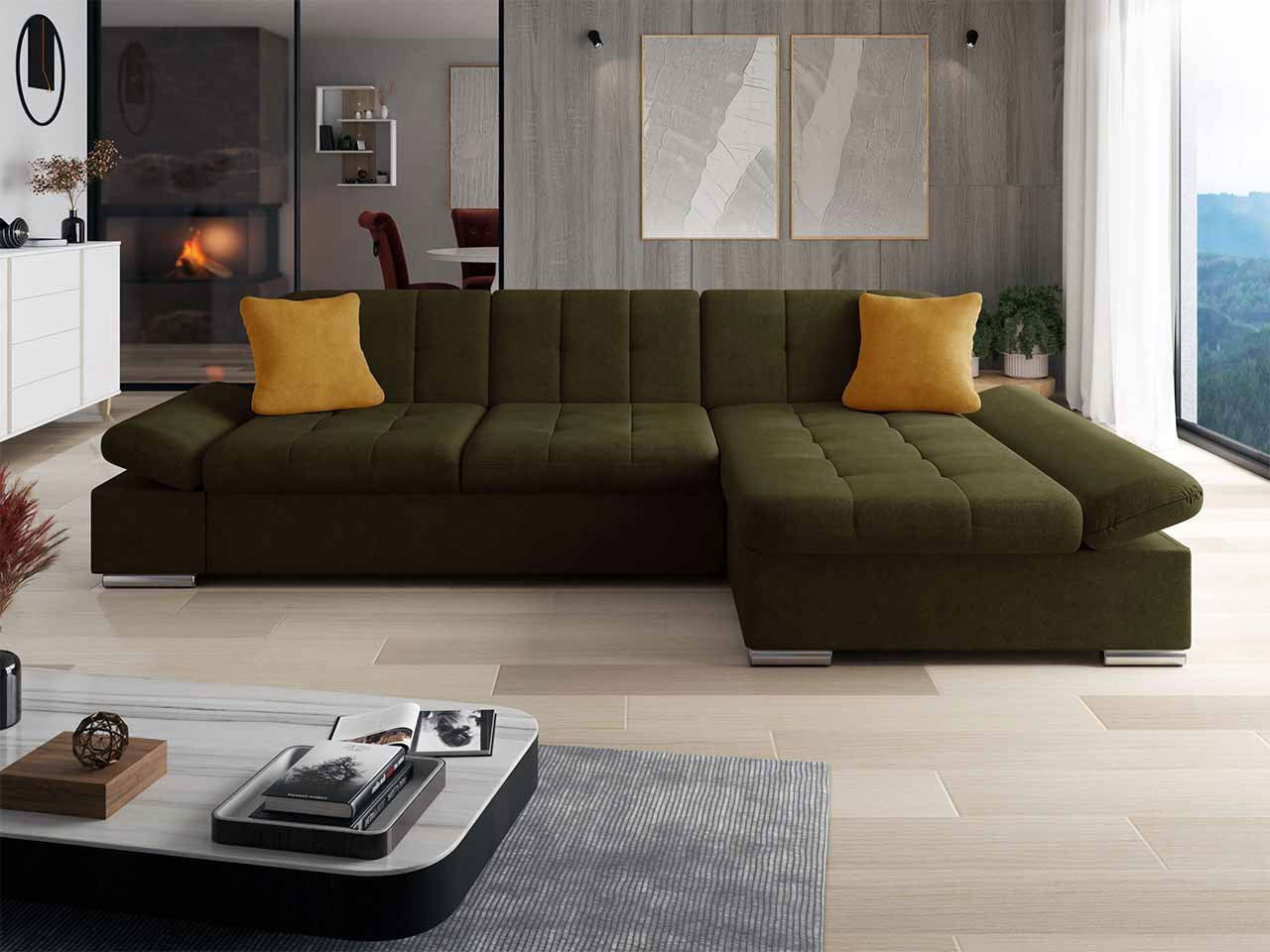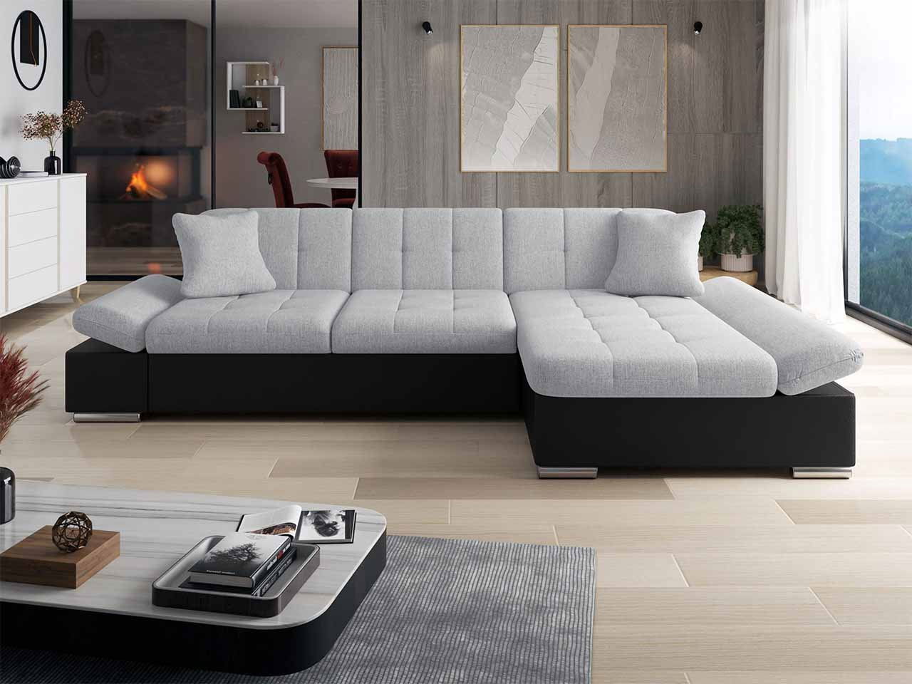 Rohová sedací souprava je ideální volbou pro ty, kteří hledají pohodlí a styl. Rohová pohovka Magnir je kus nábytku, který vnese do vašeho okolí závan svěžesti a umožní vám pohodlně si odpočinout po celodenní práci. Bude centrem odpočinku a rodinných setkání. Zajímavé kombinace různých odstínů poskytnou neomezené možnosti designu. Tento model nabízí také nastavitelné područky, které výrazně zvyšují kvalitu používání. Souprava obsahuje také polštáře na zip. Rohová sedačka do obývacího pokoje je volně stojící. Díky tomu si své interiéry zařídíte bez problémů a v souladu s vlastní aranžérskou vizí. Rozměry: délka: 278 cm, šířka: 161 cm, výška: 76 cm Rohová strana: levá nebo pravá Provedení: dřevěný rám + dřevotříska, polyuretanová pěna + vlnová pružina, bez funkce spánku, bez úložného prostoru, polštáře v ceně, polštáře na zip, chromované plast látkou), nastavení loketní opěrky Záruka: 24 měsíců