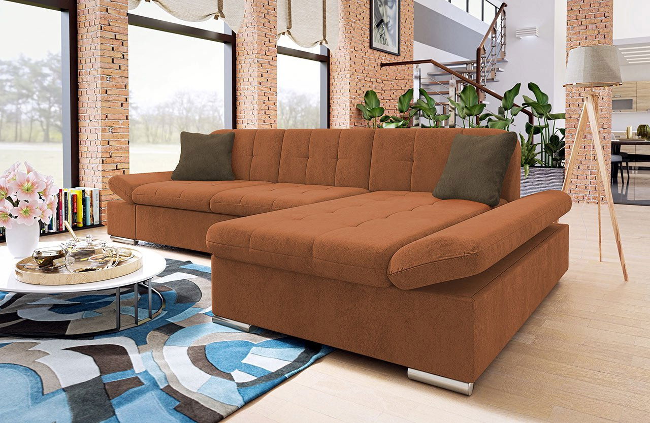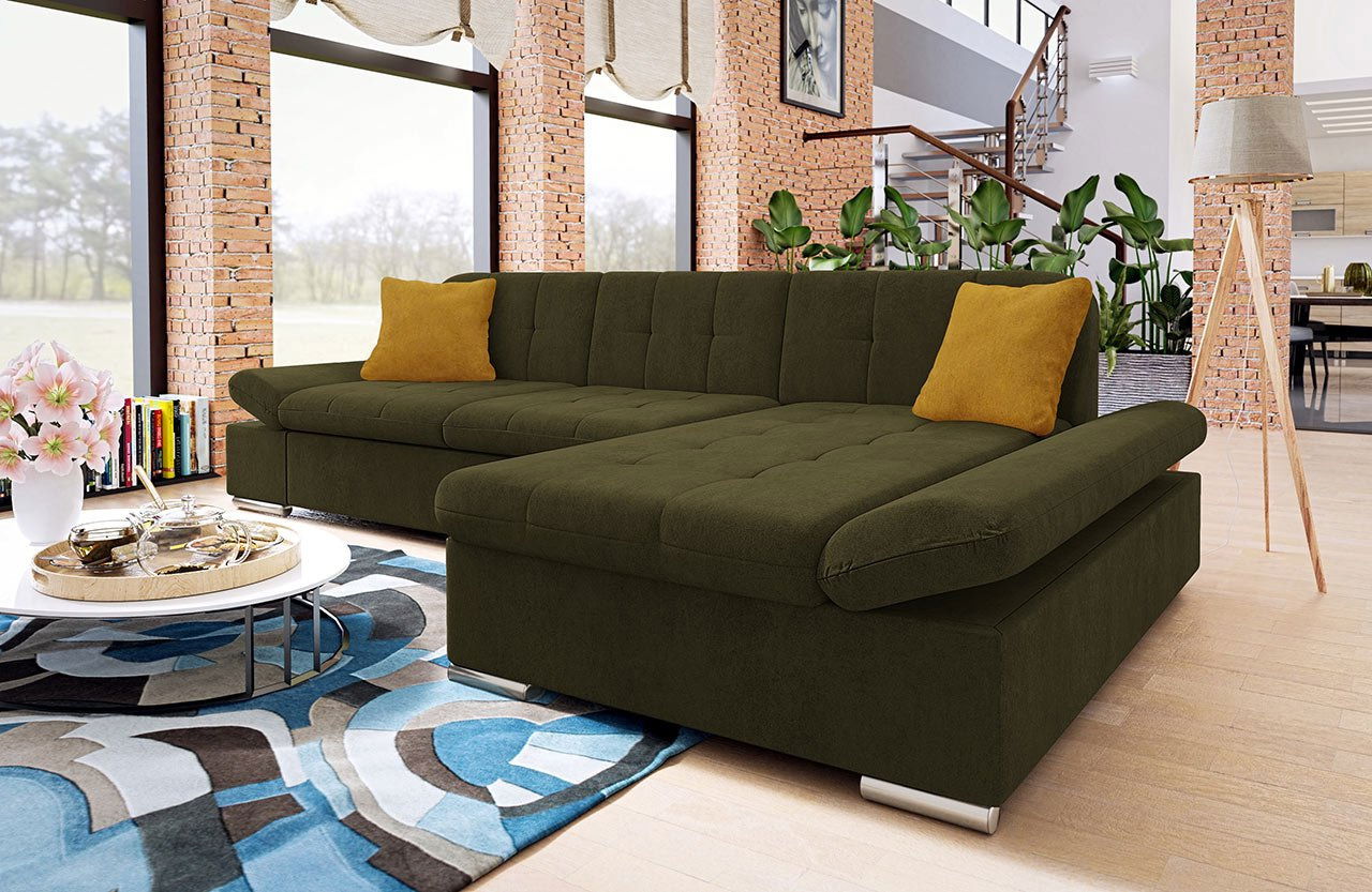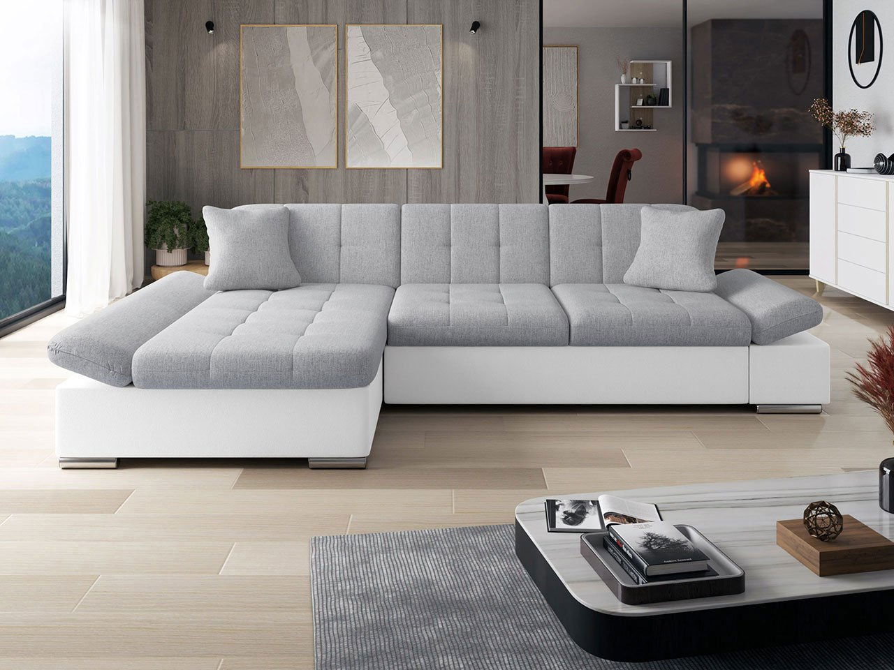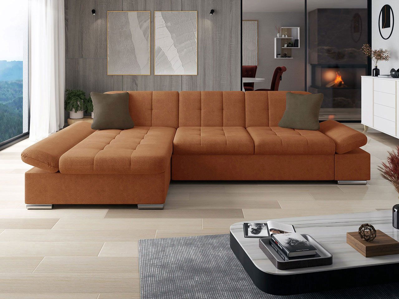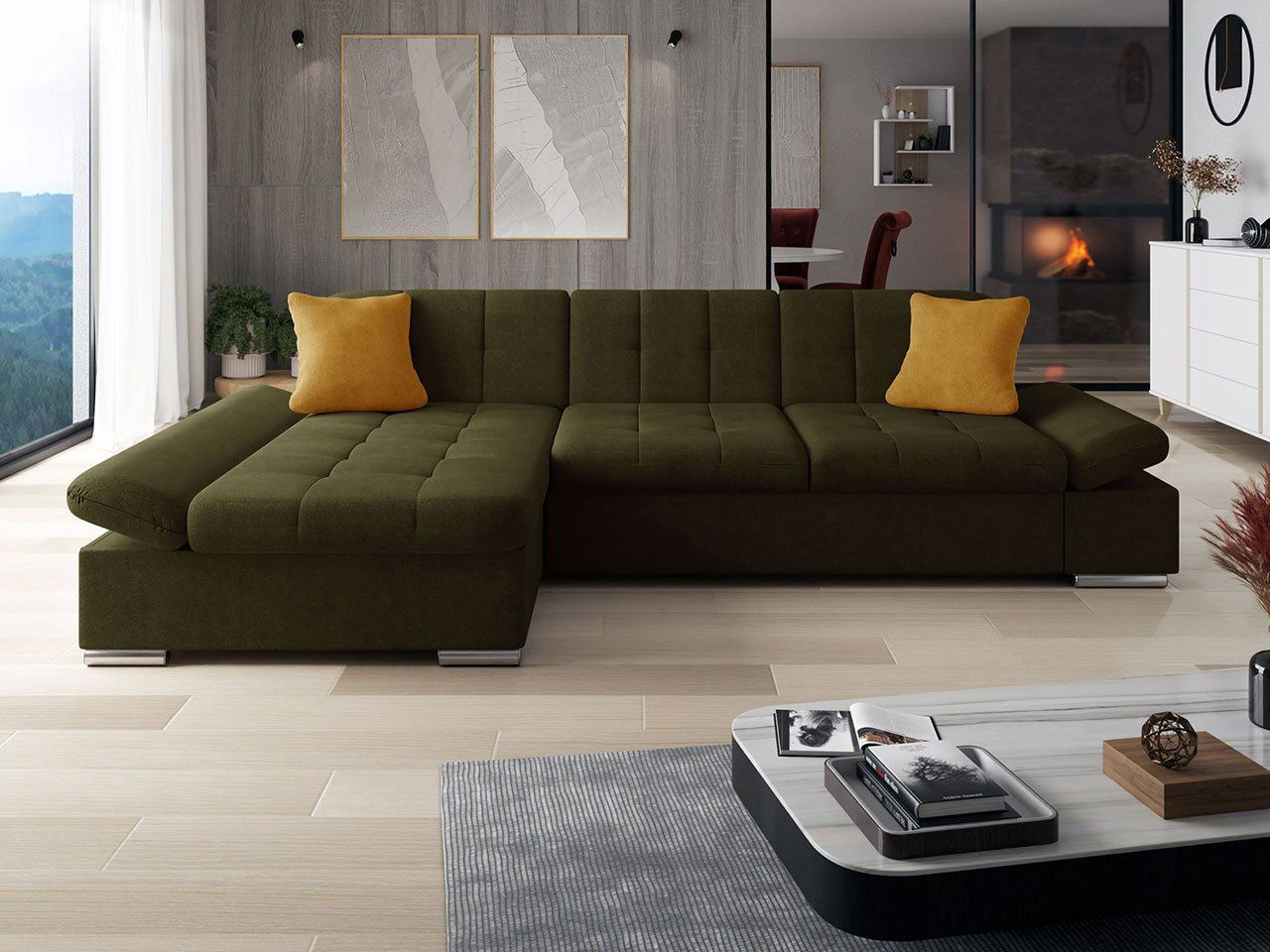 Rohová sedací souprava je ideální volbou pro ty, kteří hledají pohodlí a styl. Rohová pohovka Magnir je kus nábytku, který vnese do vašeho okolí závan svěžesti a umožní vám pohodlně si odpočinout po celodenní práci. Bude centrem odpočinku a rodinných setkání. Zajímavé kombinace různých odstínů poskytnou neomezené možnosti designu. Tento model nabízí také nastavitelné područky, které výrazně zvyšují kvalitu používání. Souprava obsahuje také polštáře na zip. Rohová sedačka do obývacího pokoje je volně stojící. Díky tomu si své interiéry zařídíte bez problémů a v souladu s vlastní aranžérskou vizí. Rozměry: délka: 278 cm, šířka: 161 cm, výška: 76 cm Rohová strana: levá nebo pravá Provedení: dřevěný rám + dřevotříska, polyuretanová pěna + vlnová pružina, bez funkce spánku, bez úložného prostoru, polštáře v ceně, polštáře na zip, chromované plast látkou), nastavení loketní opěrky Záruka: 24 měsíců