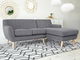 Tato kompaktní rohová pohovka je dokonalým ztvárněním stylu mid-century s moderním nádechem. Jemnou siluetu doplňují mírně šikmé nohy z dubového dřeva a prošívání s knoflíky, které pohovce dodává nádech vintage stylu. Lehátko je z pohledu sedící osoby umístěno na levé straně a nabízí příjemné sezení a komfort. Pohovka doplní jakoukoli místnost, ale nejlépe vynikne v minimalisticky zařízeném interiéru. Polštáře mají snímatelné potahy pro snazší čištění.